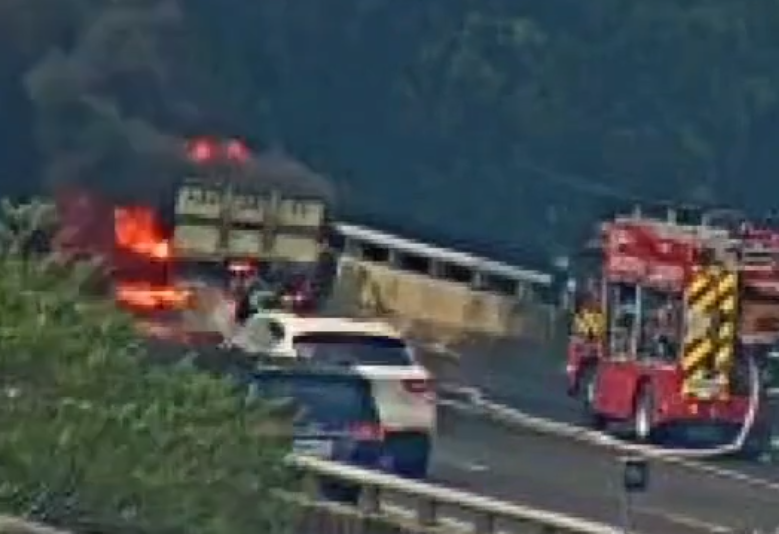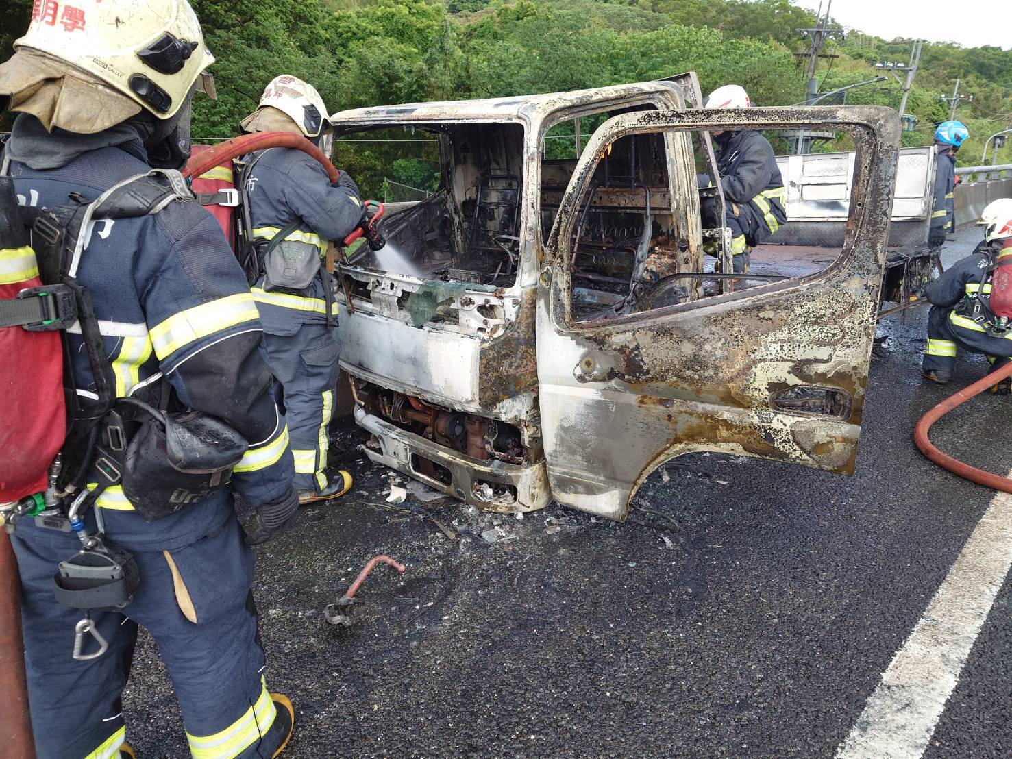 經查,46歲許姓男子駕駛小貨車,行經國道1號五楊高架南向46.2公里桃園路段,發現車頭不明原因冒煙,趕緊停車處理,車輛隨後就起火燃燒,警消獲報後立即趕到現場,所幸許男及時將車輛停下,未受到傷害也未波及其他車輛。消防隊員撲滅火勢後現場於13時05分完全排除,全線恢復通車,現場濃煙造成車流回堵約1公里,並影響主線車道車流,立即通知警廣及交控中心,提醒用路人注意路況。詳細的起火原因仍待消防進一步鑑識。