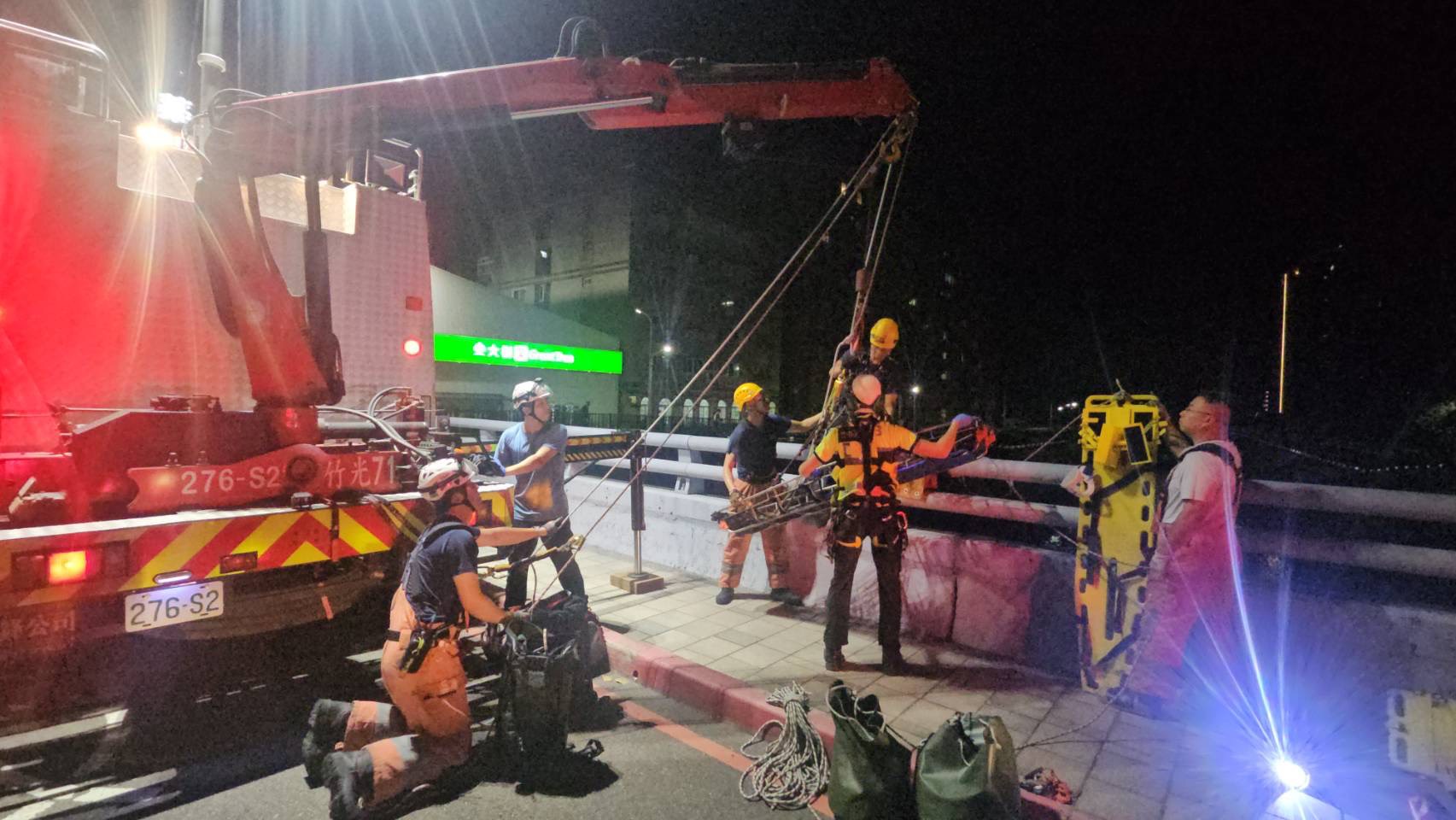 消防隊員到場後用吊車及繩索等器材,將該名年約歲的婦人從高度大約9公尺的橋下抬至路面,發現婦人已OHCA,隨即由救護車送醫,後續由警方調查處理。