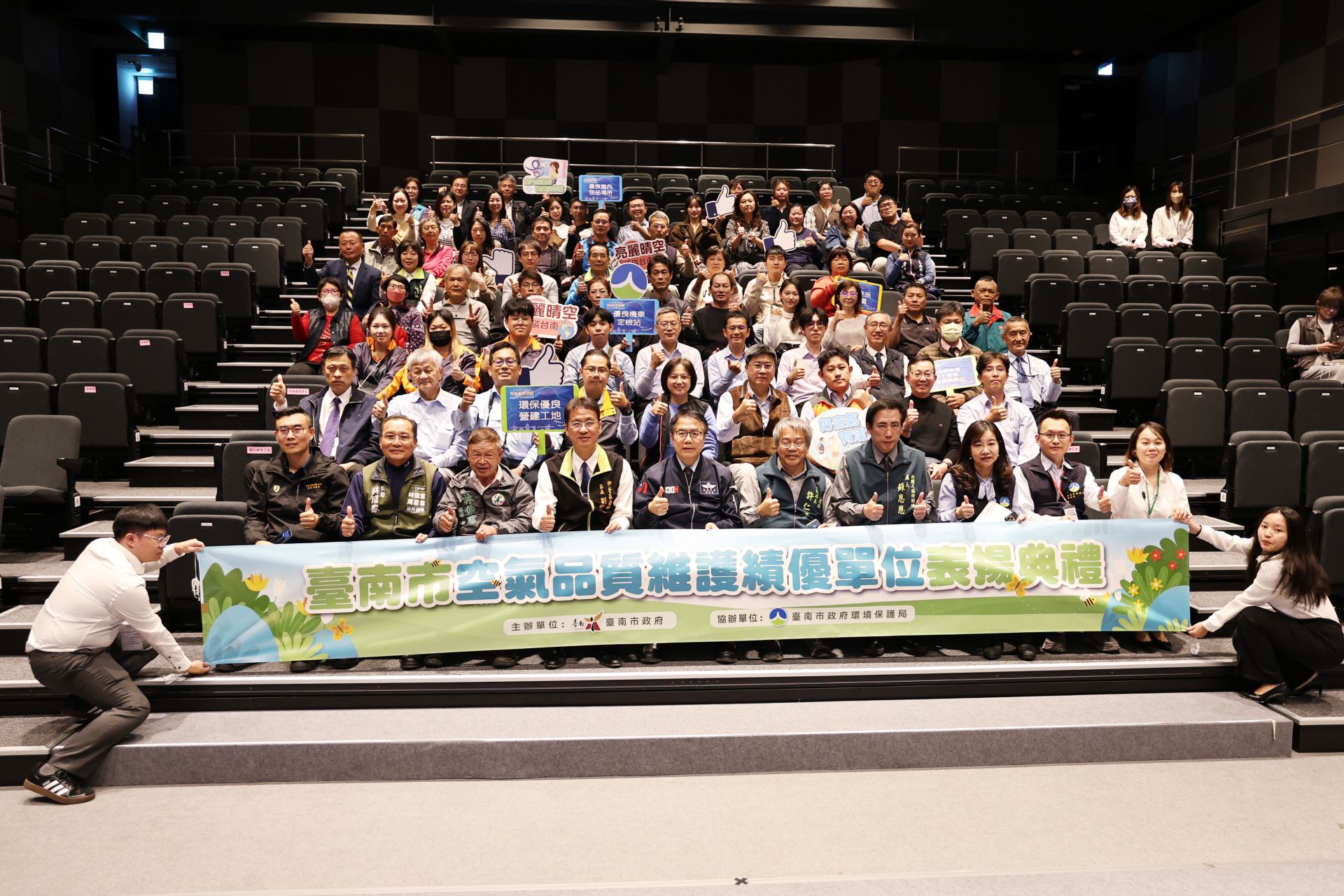 ▲市長黃偉哲親自出席「114 年度臺南市空氣品質維護績優單位表揚典禮」並頒獎,與獲獎單位合影。(記者黃雋淮 翻攝)