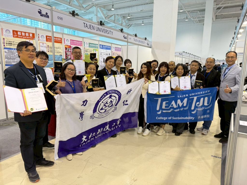 大仁科技大學於114年12月4日至6日參加「2025高雄國際發明暨設計展」,由七大系所組成研發團隊,共展出七件創新作品,最終榮獲5金、2銀及1項韓國特別獎的卓越佳績,充分展現本校跨領域研發能量與技職創新實力。