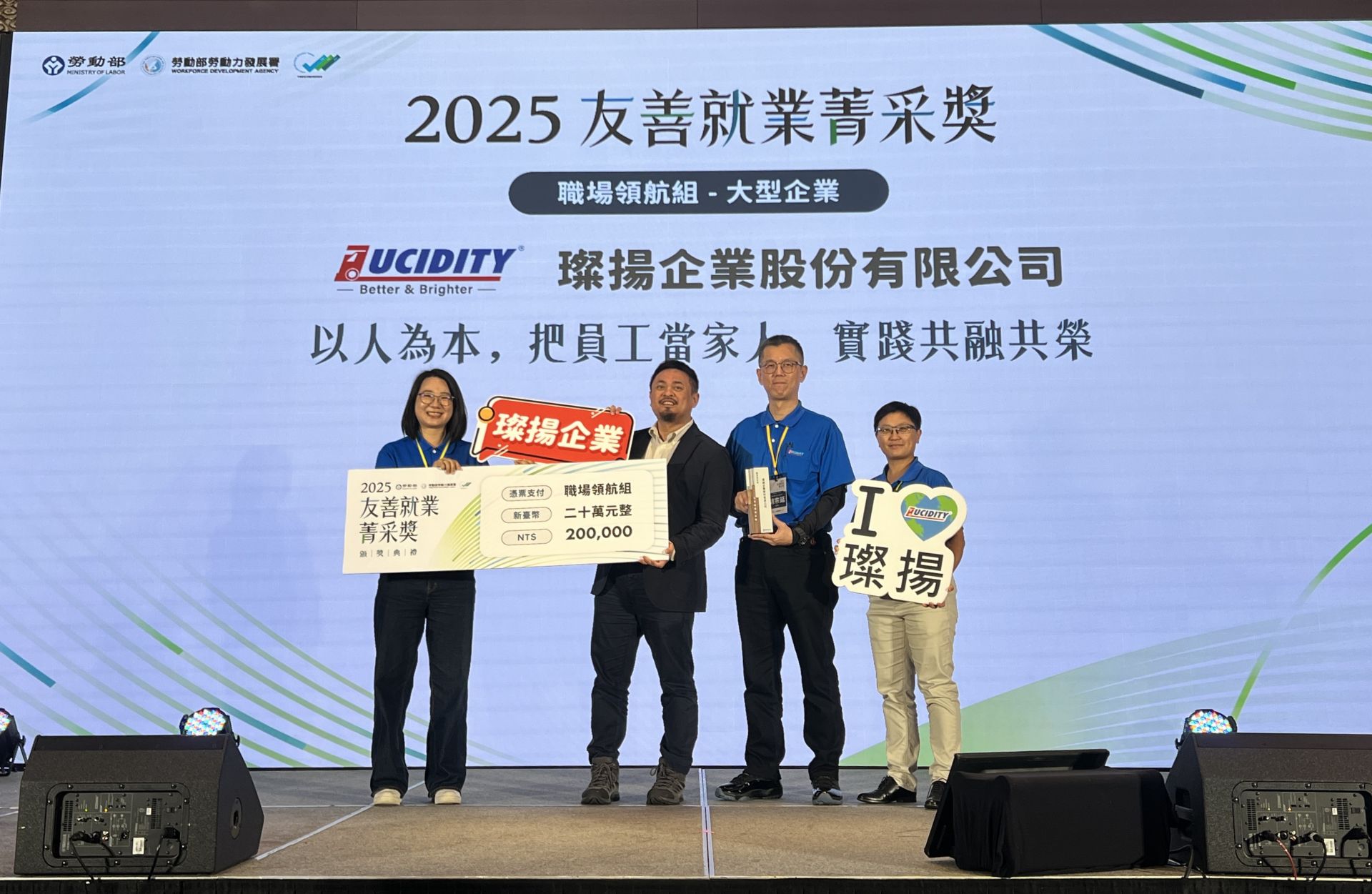 ▲璨揚企業股份有限公司榮獲勞動部「2025友善就業菁采獎」大型企業「職場領航組」殊榮。(圖/雲嘉南分署提供)