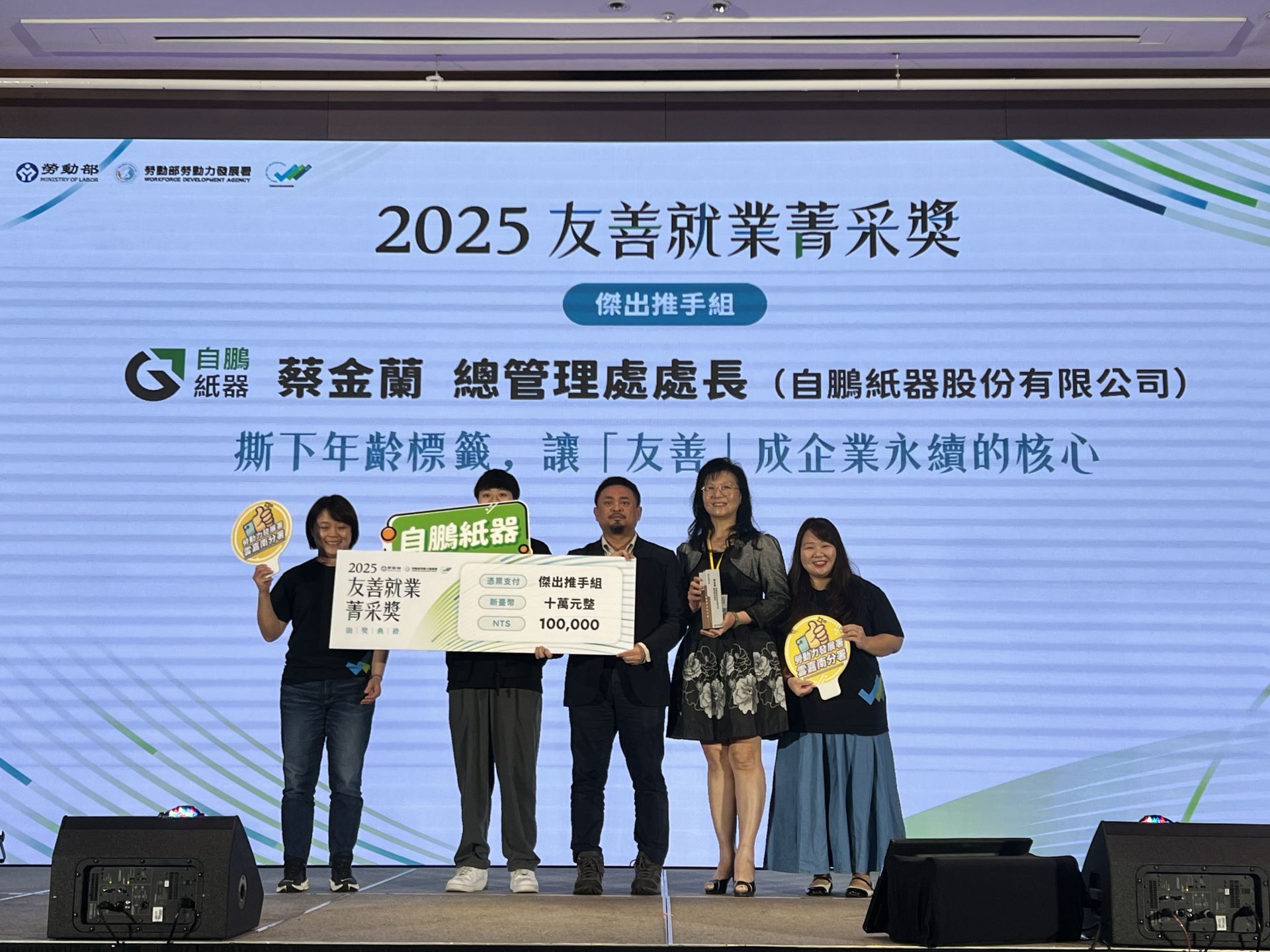 ▲自鵬紙器處長蔡金蘭榮獲勞動部「2025友善就業菁采獎」之「傑出推手組」殊榮。(圖/雲嘉南分署提供)