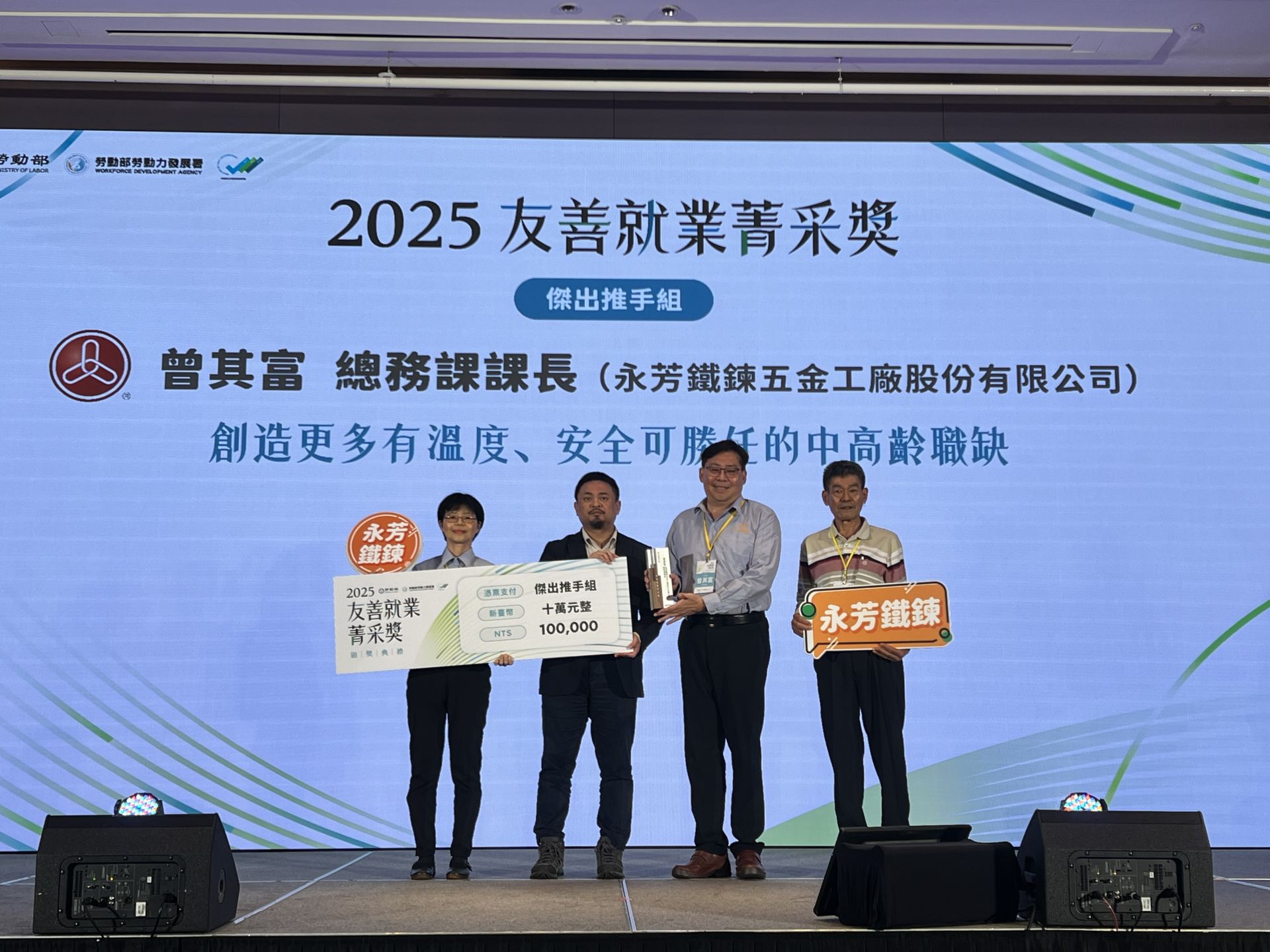 ▼永芳鐵鍊課長曾其富榮獲勞動部「2025友善就業菁采獎」之「傑出推手組」殊榮。(圖/雲嘉南分署提供)