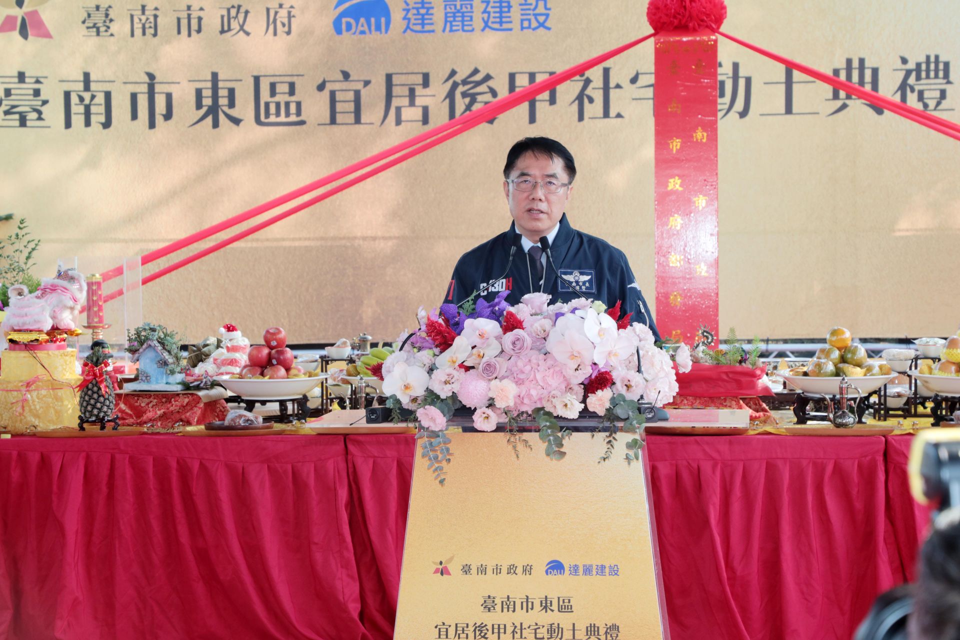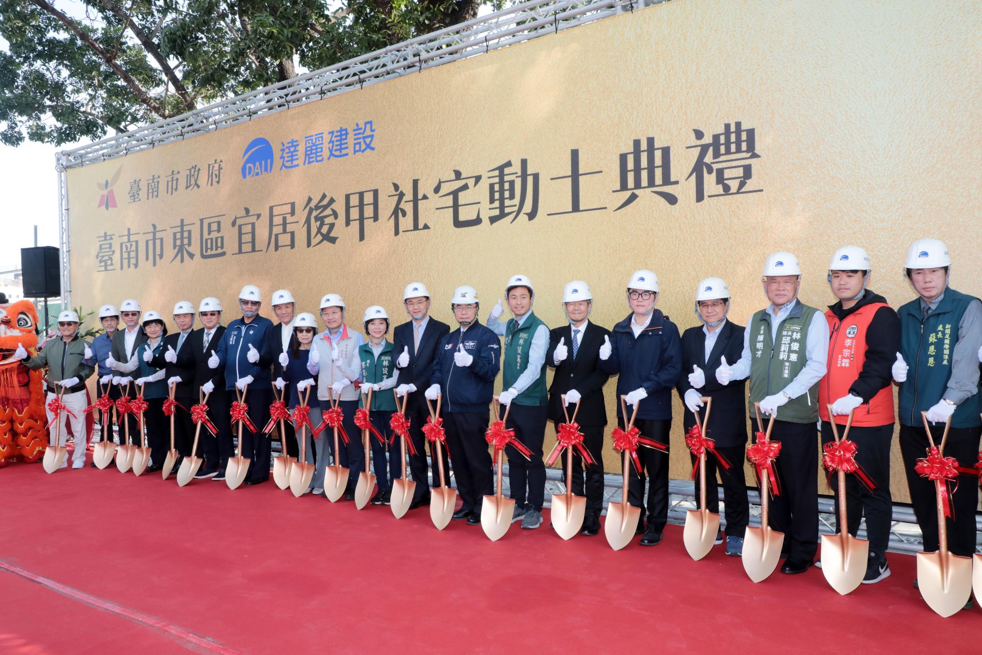 12月18日,台南市政府於東區舉行「宜居後甲」社會住宅動土典禮,標誌著公辦都市更新與社會住宅政策的重要推進。市長黃偉哲與內政部相關官員、地方民意代表一同見證此指標性建案正式啟動,預計於118年完工。