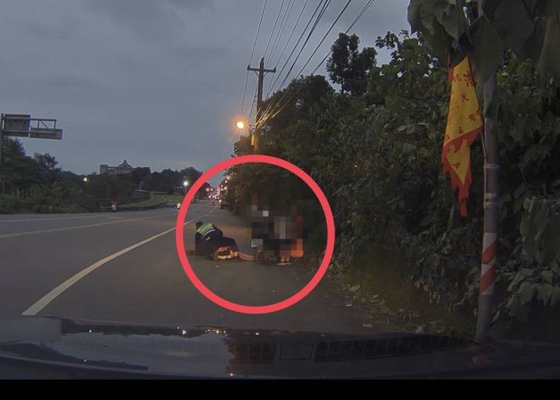 騎士突發癲癇不適--水源警即時援助送醫化險為夷(圖/吉安分局 彭可翻拍)