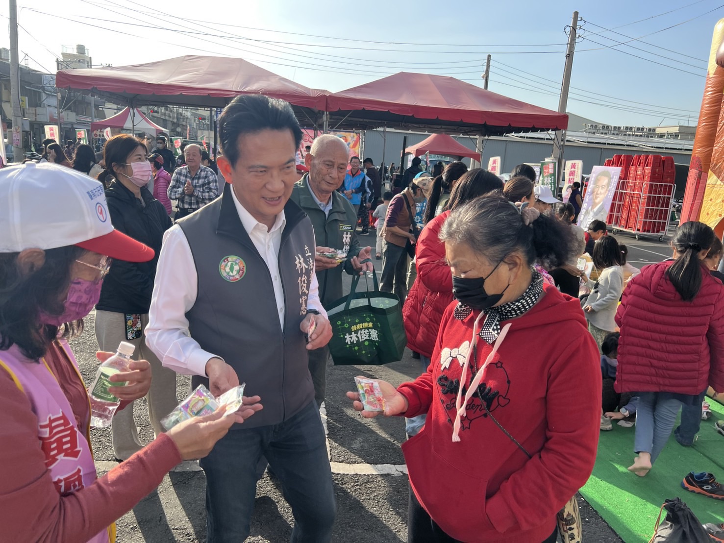 ▲假期活動滿檔 市長參選人林俊憲展現親和力及高人氣。(立委林俊憲團隊 提供)