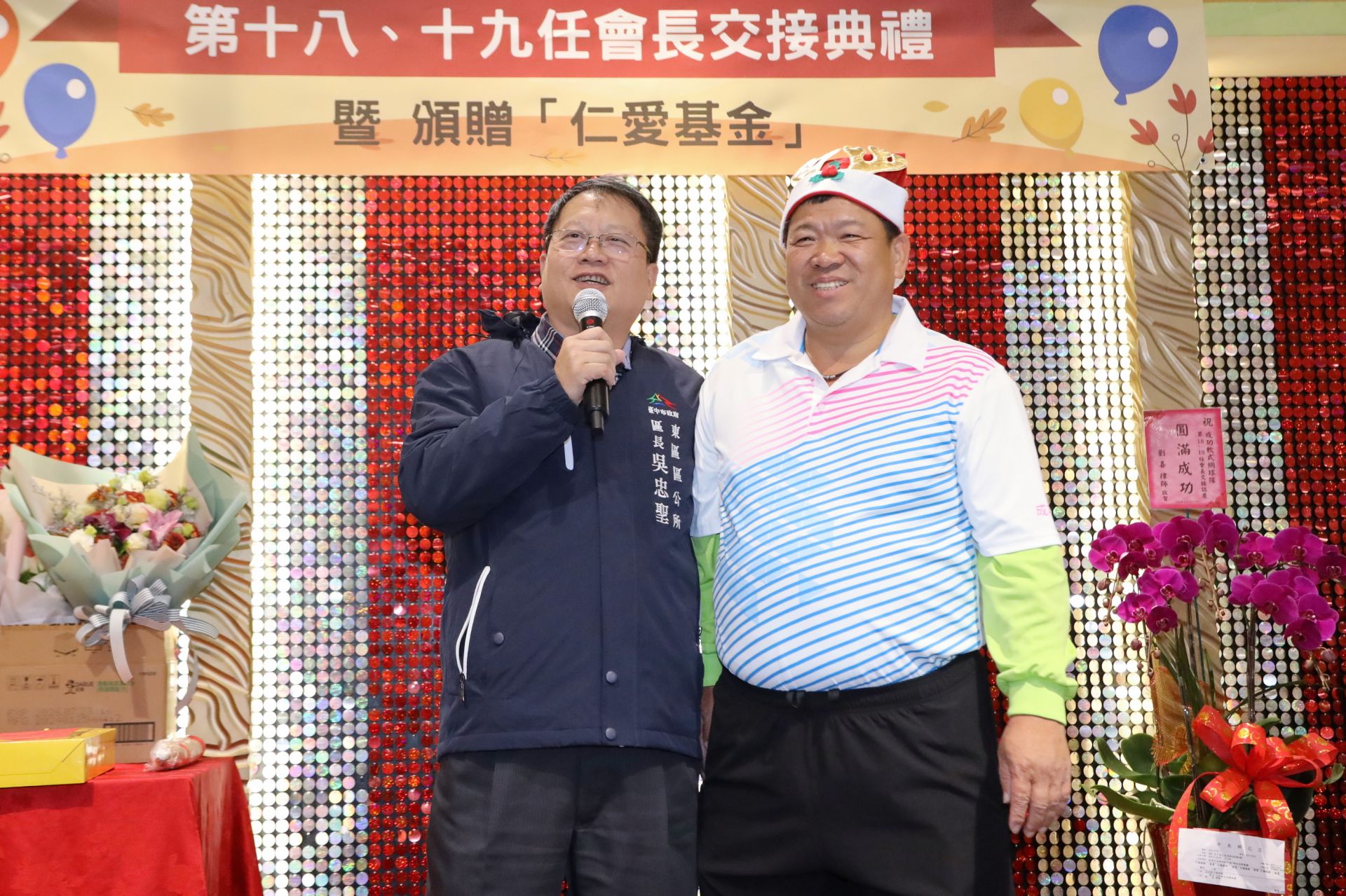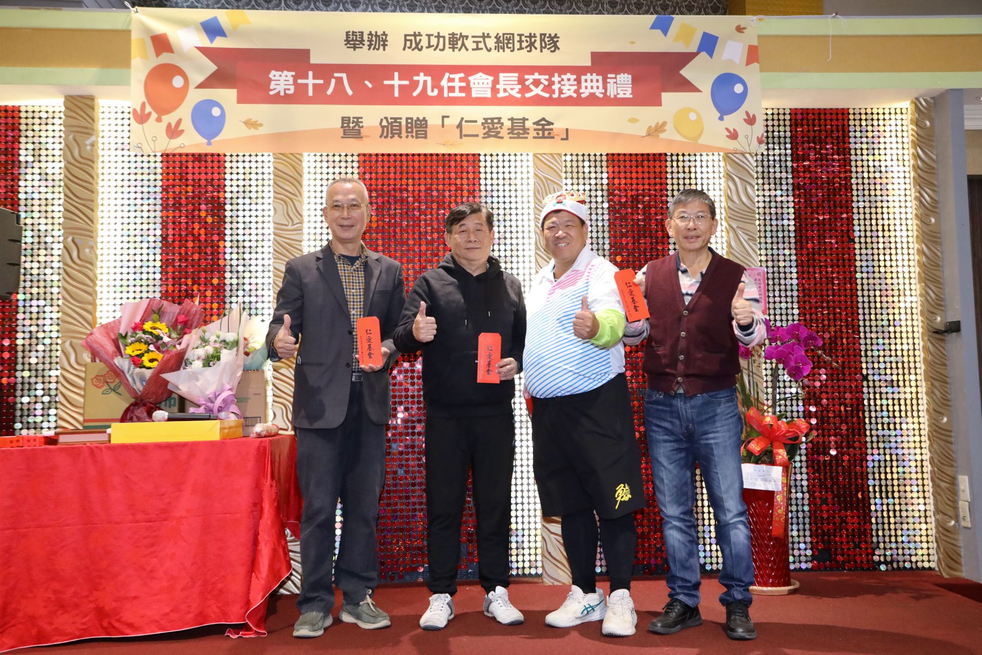 新任會長林文仲長期熱心公益,致力推廣網球運動。為實踐「取之於社會、用之於社會」的理念,他在接任之際,特別頒贈「仁愛基金」予育英國中、東峰國中、大業國中等3所國中,以及進德國小、樂業國小等9所國小,總計12所學校受惠,由各校校長代表接受。