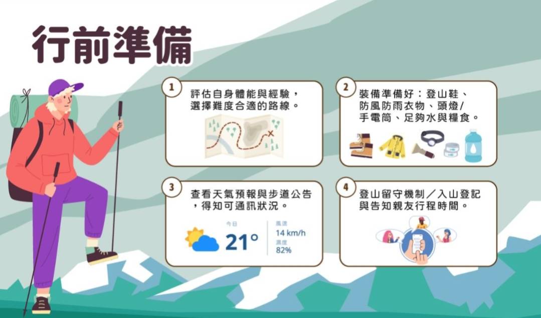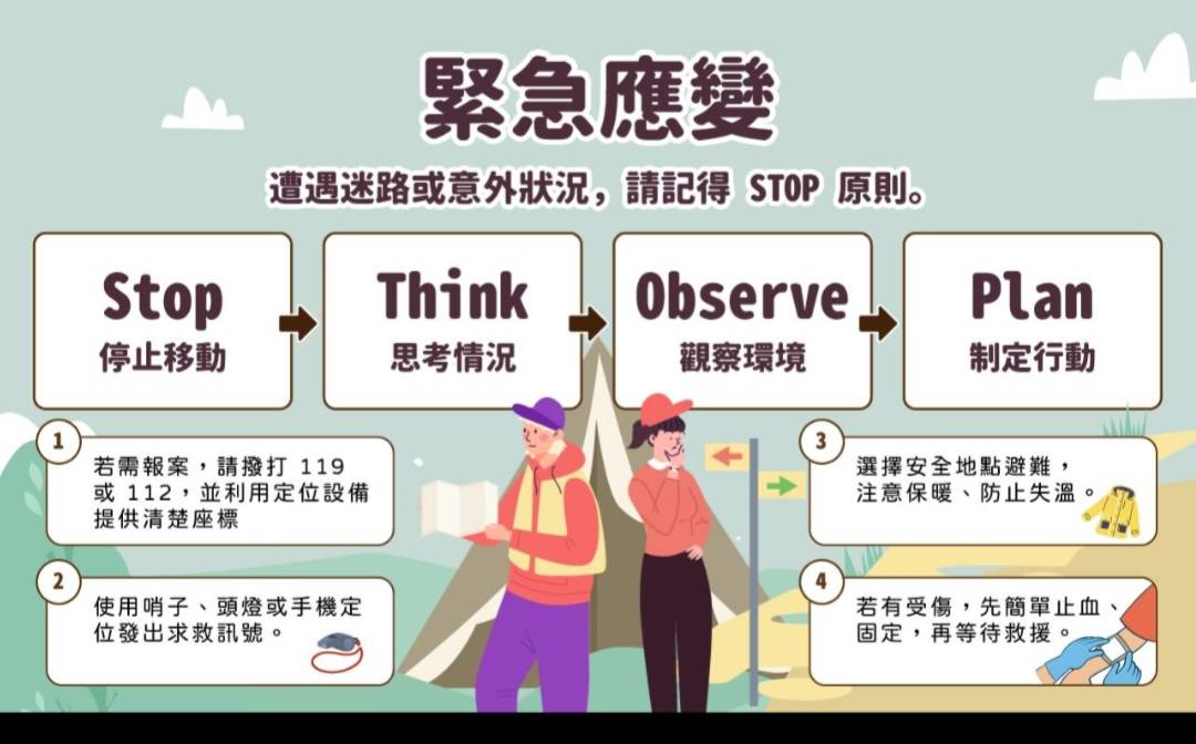 消防署呼籲,若仍有登山需求,務必事前查詢天氣與雪況,並攜帶完整裝備,包括:足夠保暖衣物(含防風防水外層)、備用乾燥衣物、頭燈與備用電池、定位設備或衛星通訊器材、行動電源、高熱量糧食與飲水、急救與保溫用品(保暖毯)、地圖或離線導航工具,並完成登山計畫通報。