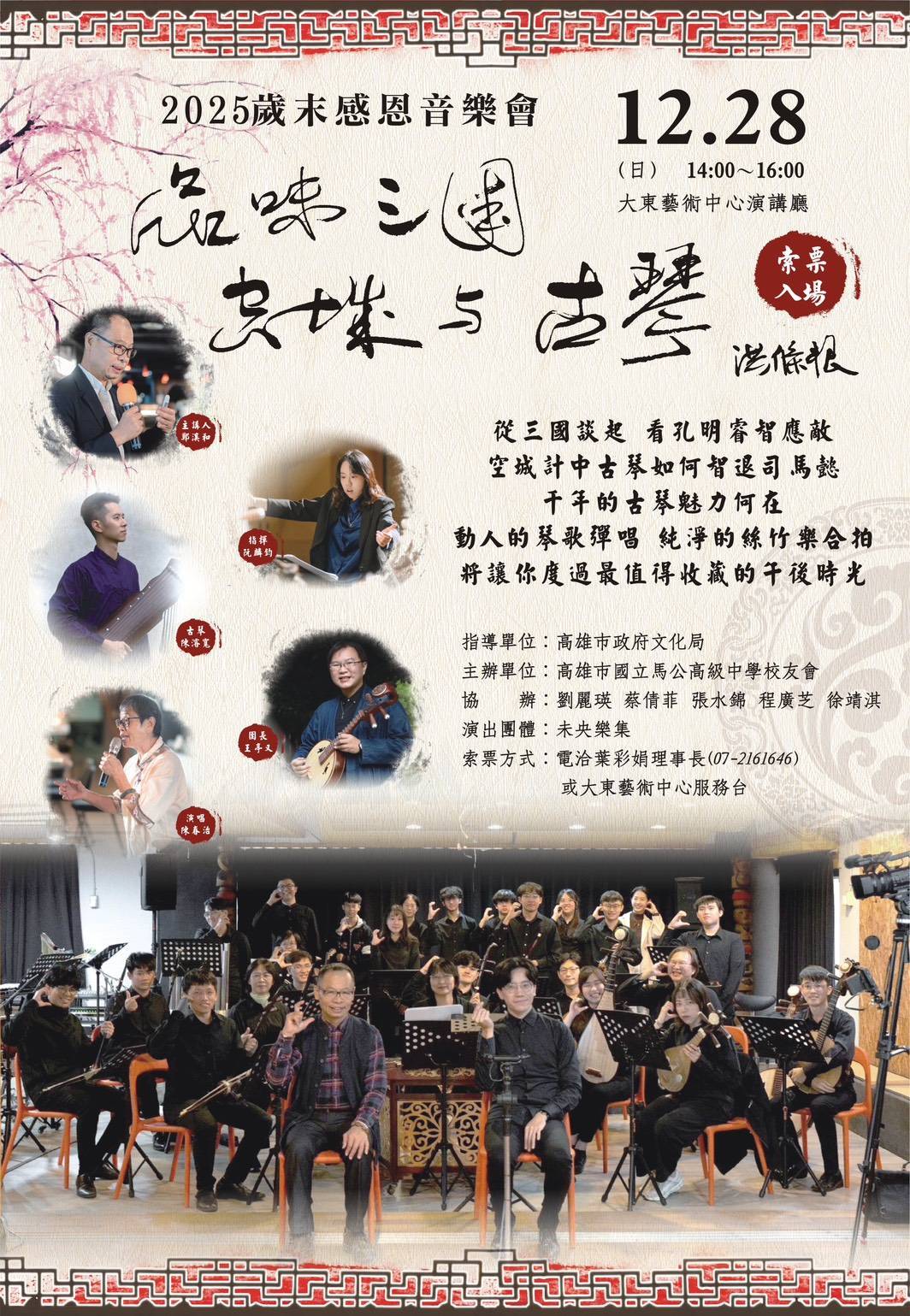 高雄市馬公高中校友會舉辦歲末感恩音樂會 「品味三國 ~ 空城與古琴」座無虛席圓滿落幕