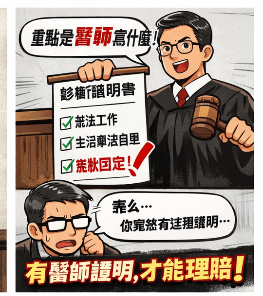一、破解「拖到死亡就不用賠」的灰色地帶本案明確指出,只要醫師已可立即判定失能,保險公司不得再以病程未滿6個月為由拒賠。