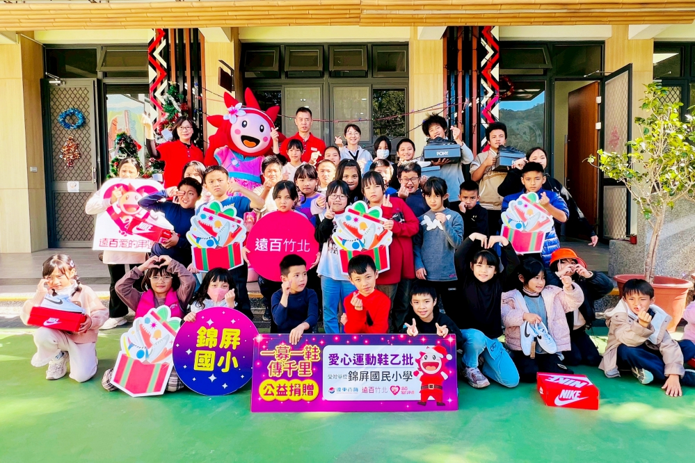 隨著2025年邁入尾聲,竹北遠百延續聖誕佳節的溫暖,趕在新年到來前,將「一募一鞋傳千里」公益活動所募集的新鞋親送到學生手中,陪伴孩子們穿上新鞋、帶著祝福迎向嶄新的2026年。