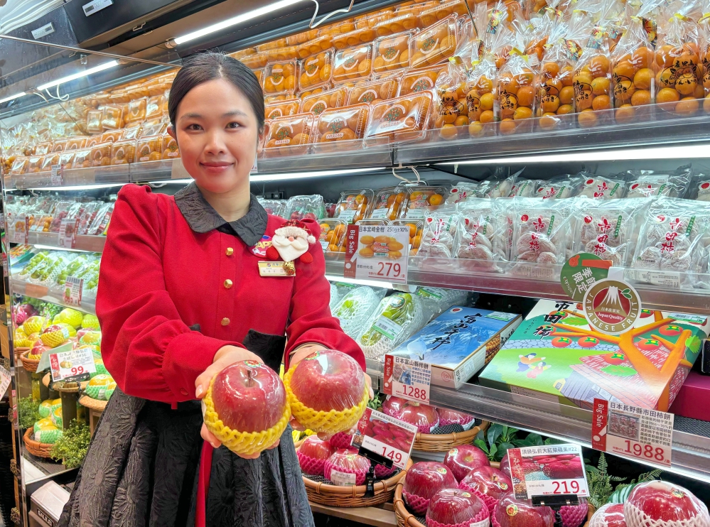 ▲竹北遠百自2026年1月1日起,凡持APP金級會員及全館當日單筆滿1,000元之同卡號發票,即贈「日本弘前陽光富士蘋果#32」乙顆,讓您在新的一年開頭就「蘋」安幸福。(圖/竹北遠百提供)