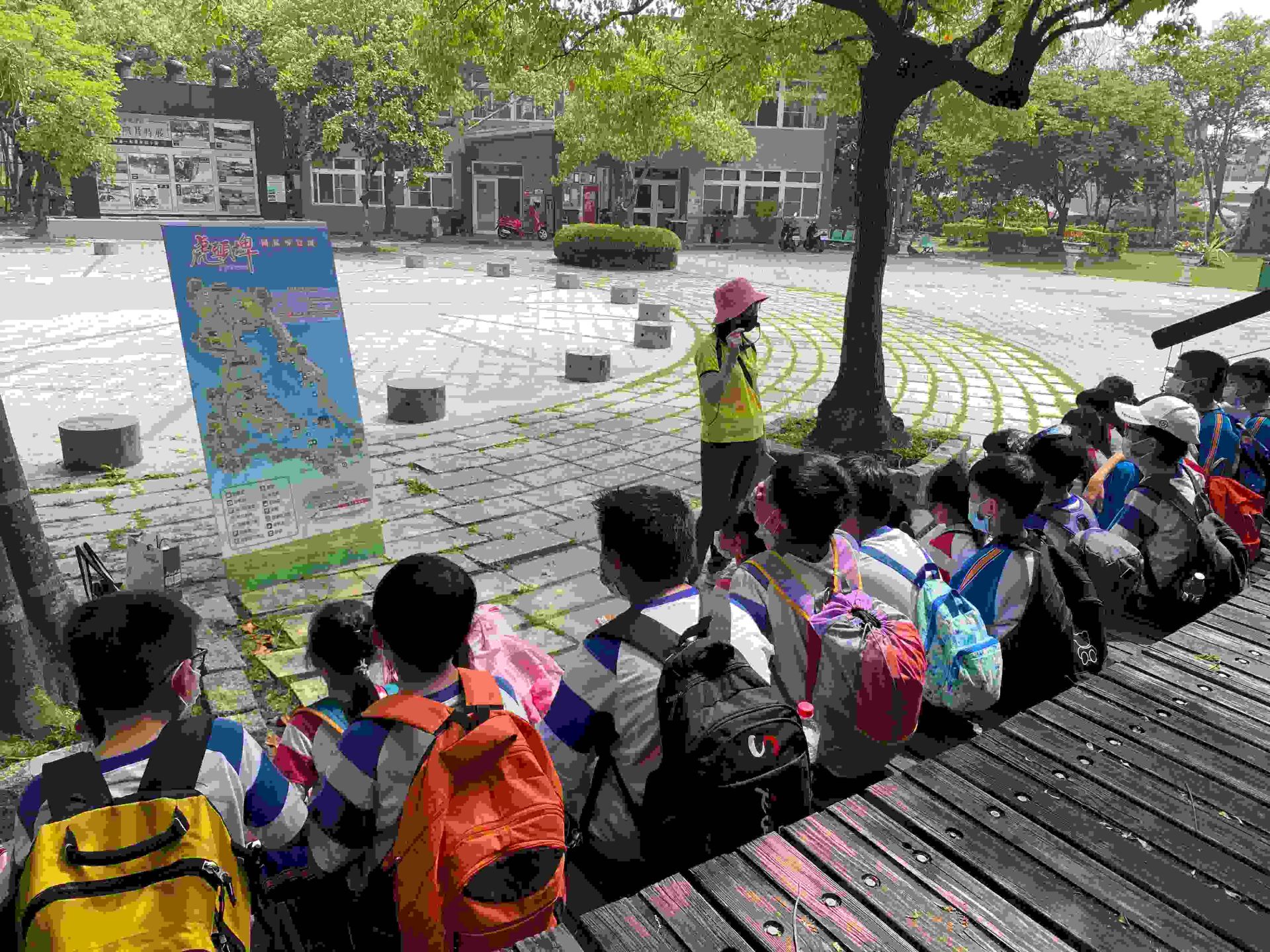 ▲4.虎頭埤風景區志工為國小學童進行園區解說。(觀旅局 提供)
