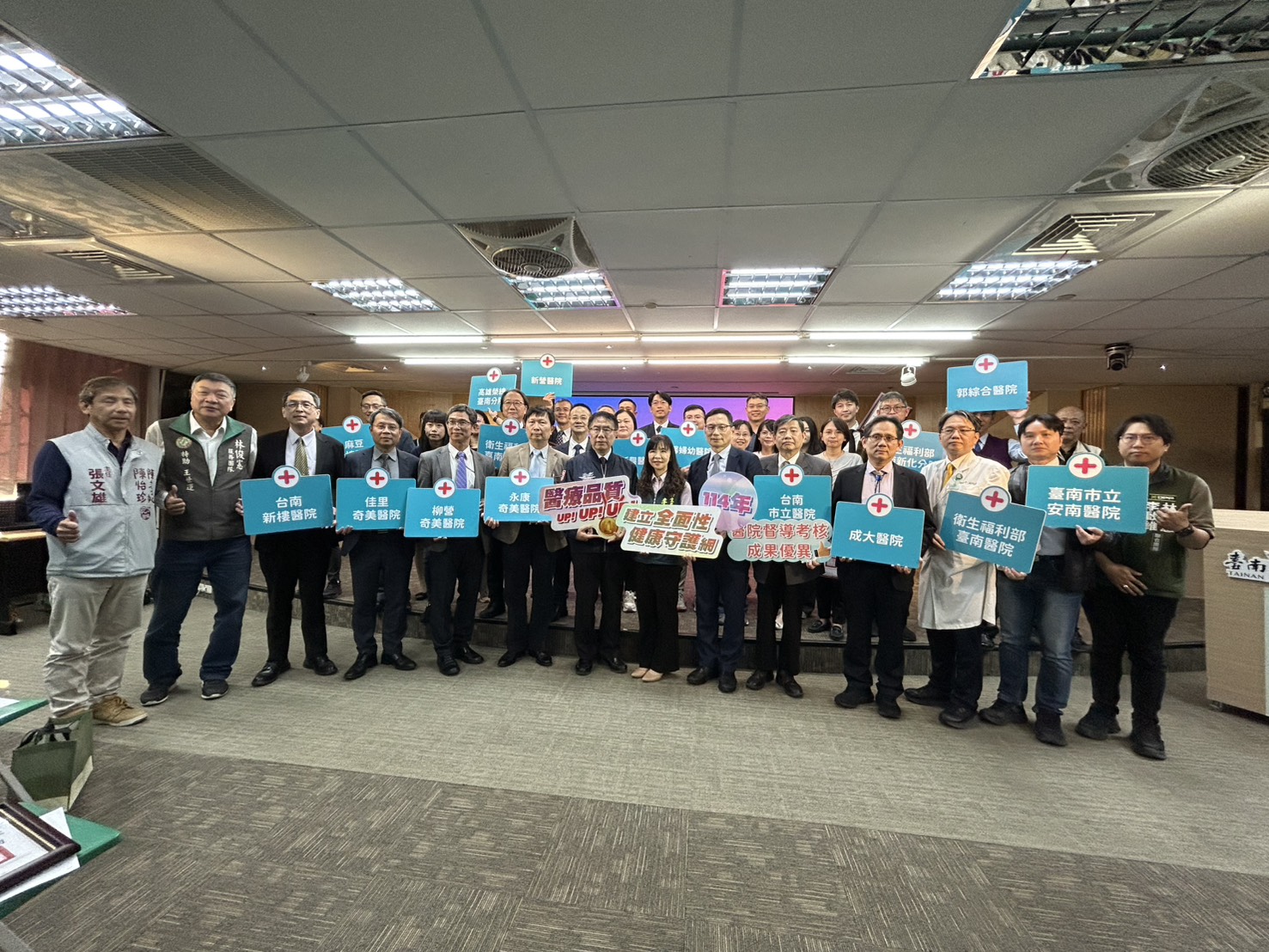 今年納入醫院督導考核之醫院共計27家(另7家醫院由衛生福利部辦理醫院評鑑),評核範圍涵蓋醫事品質、國民保健、心理健康、藥物膳食及疾病管理五大領域,經過專家學者及市府各局處委員的評核,6家醫院榮獲督考優等獎,包括國立成功大學醫學院附設醫院、奇美醫療財團法人奇美醫院、台南市立醫院、奇美醫療財團法人佳里奇美醫院、奇美醫療財團法人柳營奇美醫院、衛生福利部新營醫院。