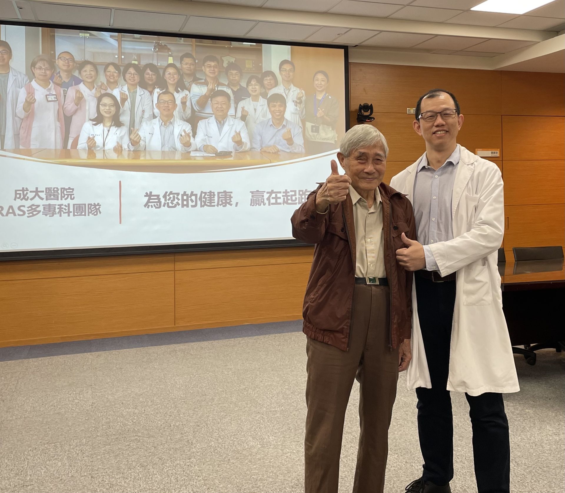 ▲92歲病友白先生術後恢復良好,今天到記者會現場感謝陳柏全醫師及醫護團隊。