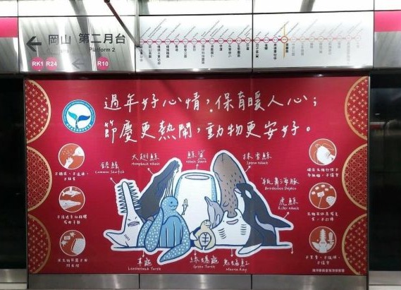 圖1.海洋保育署在左營高鐵站的壁貼文宣提醒大眾過節歡慶不忘保育。