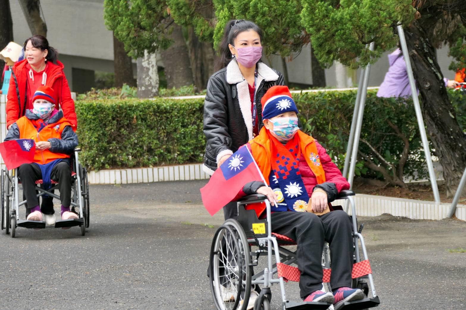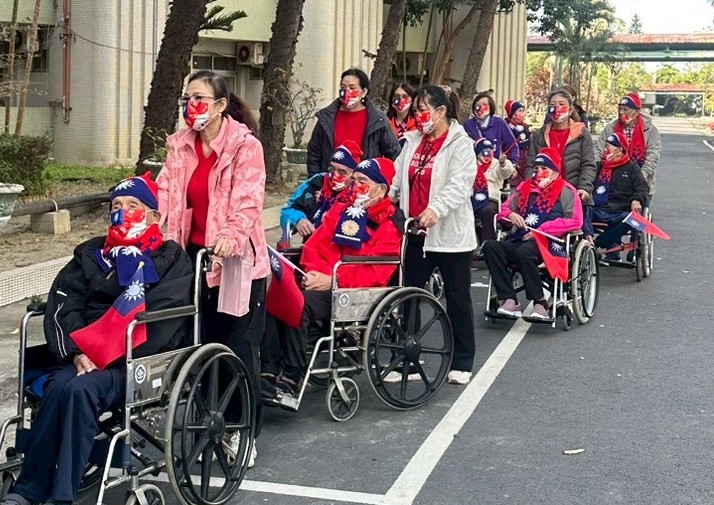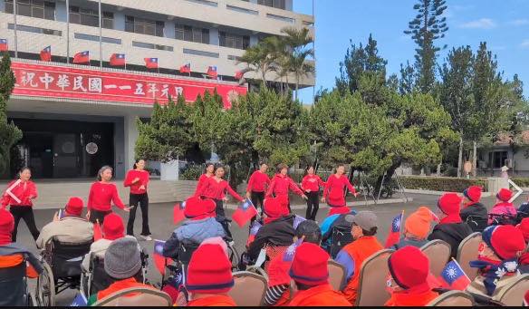 1日上午一大早,協會理事長馬晶與成員,各自從市區集合開車前往佳里區榮家,參加升旗典禮後,並表演一段舞蹈,為榮家的長輩助興,隨後幫長輩推著輪椅散步及聊天,讓他們受到晚輩的關懷。
