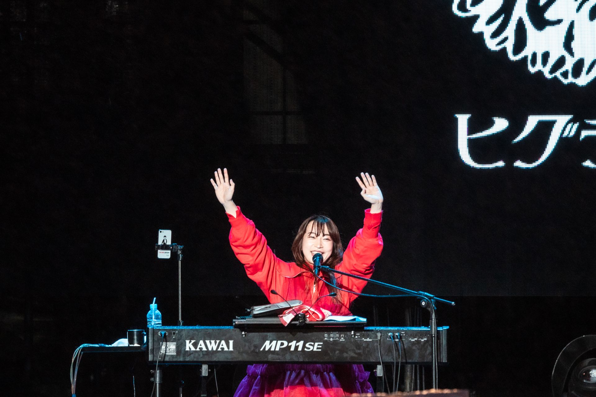 日本創作歌手樋口愛同樣成為焦點。此次來台演出,她率領近 10 人團隊登台,身穿喜氣紅色造型現身舞台,格外吸睛。晚會尚未開始,線上平台便頻頻出現網友詢問她的出場時間,顯見期待程度。正式登台後,直播畫面瞬間被滿滿愛心符號洗版,即便當晚氣溫偏低、細雨不斷,現場與線上氣氛依舊熱烈。樋口愛以自彈自唱方式演出,情感隨著旋律自然流動,現場觀眾靜靜聆聽,線上觀眾則以刷屏回應,交織出溫柔卻強烈的跨年情緒。