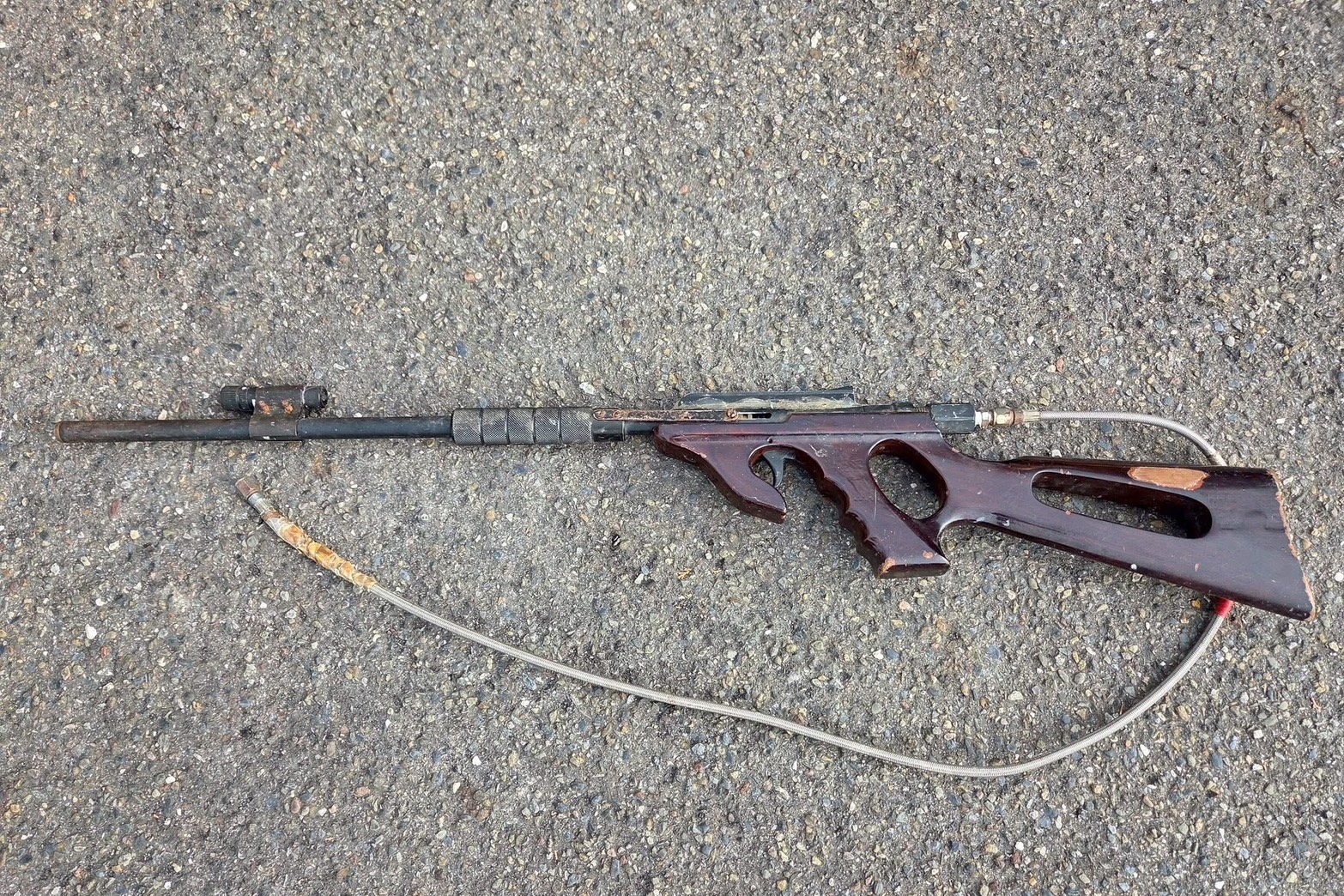 竊嫌在農舍偷得一把空氣長槍。翻攝畫面