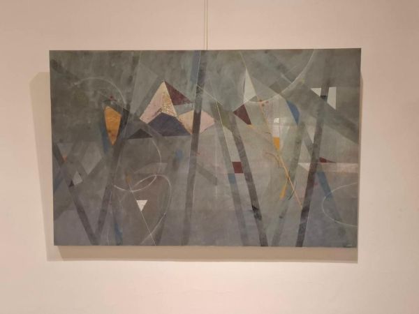 藝術家楊文菱的創作亦與此相呼應。單刷版畫與複合媒材的運用,使作品呈現出獨一無二、不可複製的面貌,正如同每段人生經歷都無法重現。作品中不斷堆疊的形狀與紋理,宛如日記般,紀錄著行走的足跡與心境的轉折。生命歷程亦如創作般,充滿選擇與迷惘。