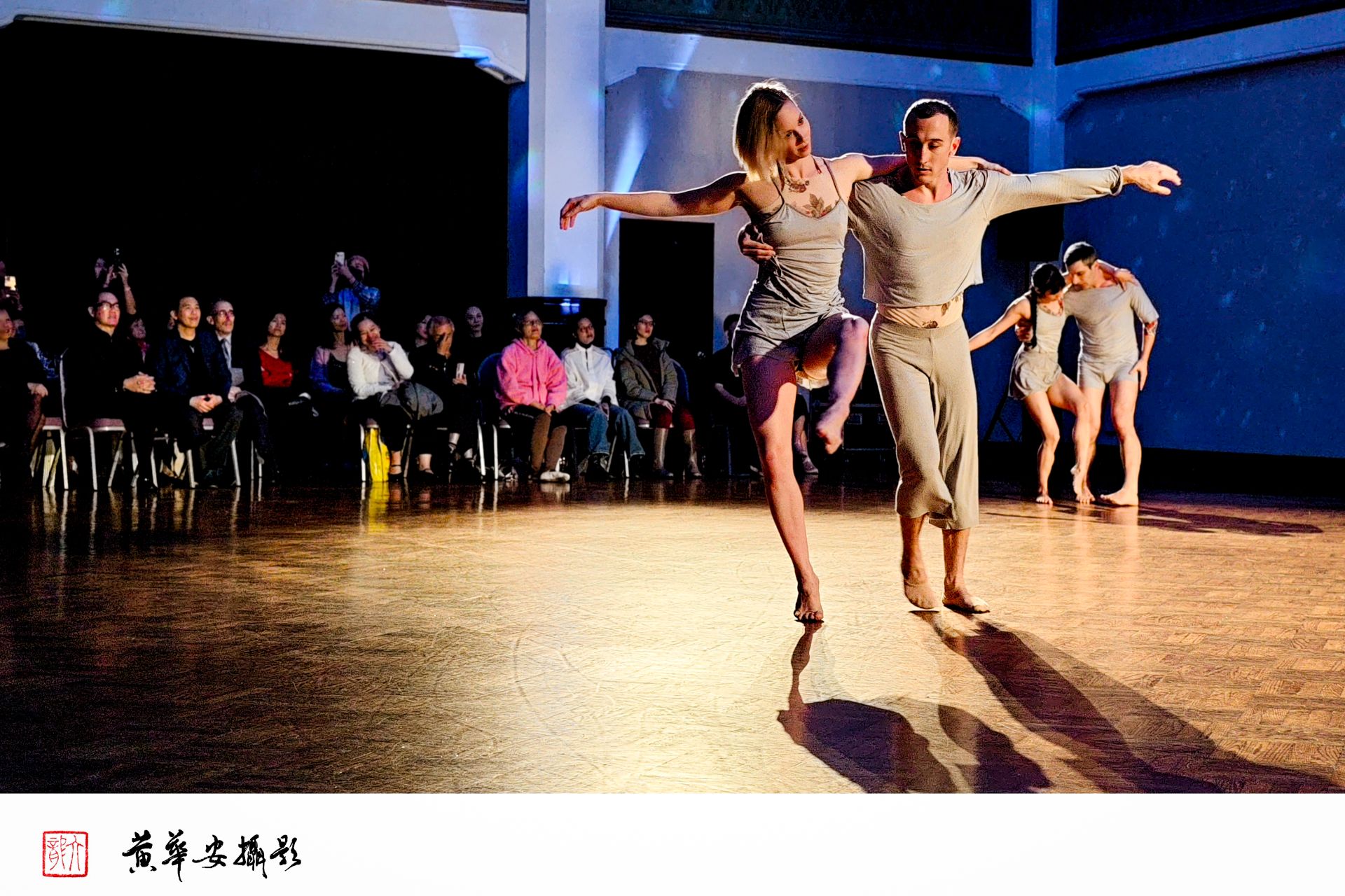 演出內容方面,中山堂此次與國際舞台文化表演藝術交流協會合作,促成與美國現代舞團 ODC 舞團(Oberlin Dance Collective)的交流。該舞團由 Brenda Way 於 1971 年創立,至今已創作超過八十五部作品。高齡八十多歲的 Brenda Way 亦親自到場,她提到三十多年前曾來臺演出,此次再度造訪臺北,感受到城市的進步與美麗;而 2026 年也將迎來 ODC 成立 55 週年,能在此時參與中山堂九十週年的重要時刻,別具意義。ODC 當晚帶來《墨韻狂潮》(Inkwell)與《上與下的簡史》(A Brief History of Up and Down)兩段舞碼,融合爵士、古典與當代舞蹈語彙,並搭配光雕設計,在光復廳內呈現層次豐富而沉靜的舞台畫面。