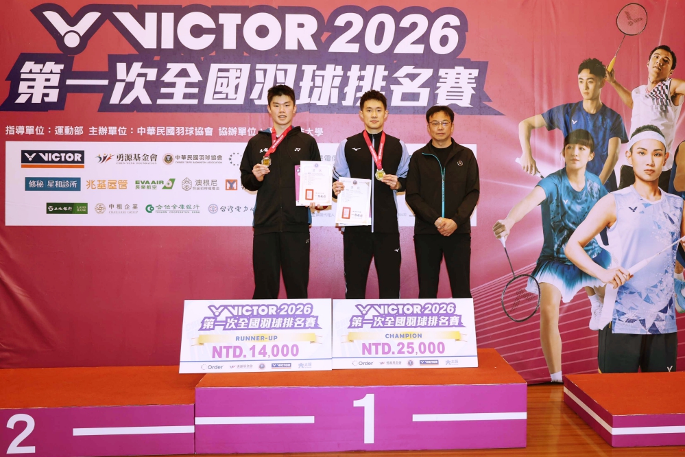 ▲2026第一次全國羽球排名賽甲組男子單打冠中租國體大戚又仁。(圖/中華羽協提供)