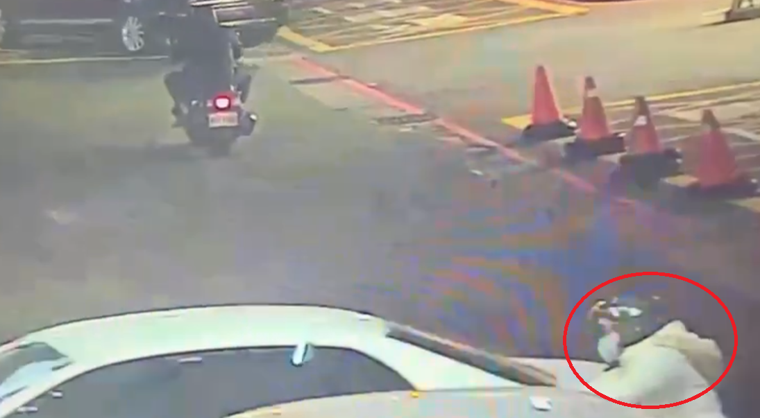 轎車從許昌街地下停車場駛出暴衝撞到一名女機車騎士(紅圈處)。翻攝畫面