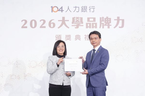圖說1:文藻外語大學榮獲104人力銀行「2026年大學品牌力」外語學群全國第2名(僅次台大),由文藻林耀堂副校長(右)北上代表領獎。