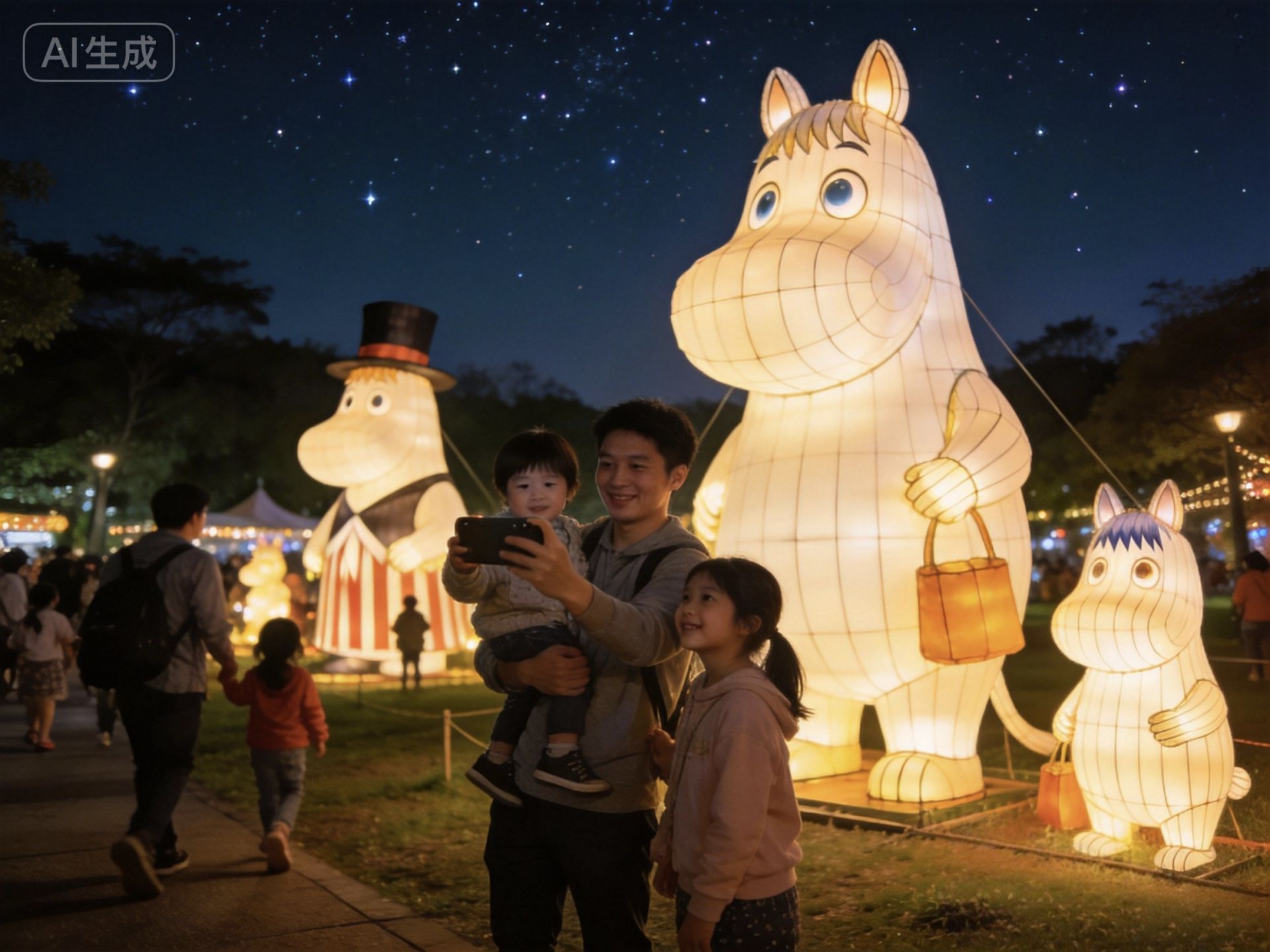本屆燈會由臺中市政府規劃,攜手芬蘭經典童話角色姆明,透過角色意象傳遞「家庭、陪伴與幸福」的核心精神。現場可見姆明一家在燈海中共享溫暖時刻,營造出適合親子、情侶及各年齡層遊客共遊的友善空間,讓賞燈不僅是視覺體驗,更是一段情感連結。