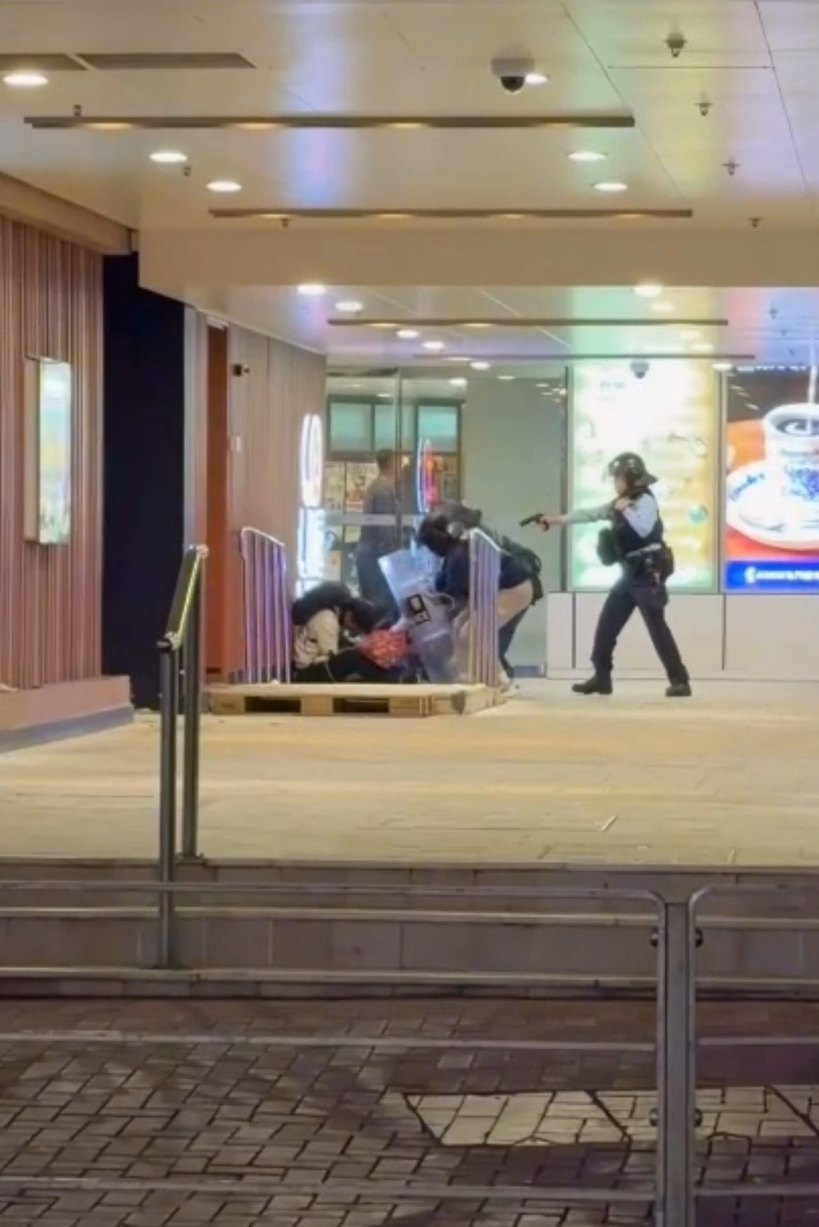 香港新界屯門市廣場昨(15)日發生一起驚悚持刀事件,一名男子在街頭揮舞利刃,並一度挾持女人質,警方獲報趕抵後多次警告未果,最終開2槍將其制伏,嫌犯中彈後昏迷送醫不治。