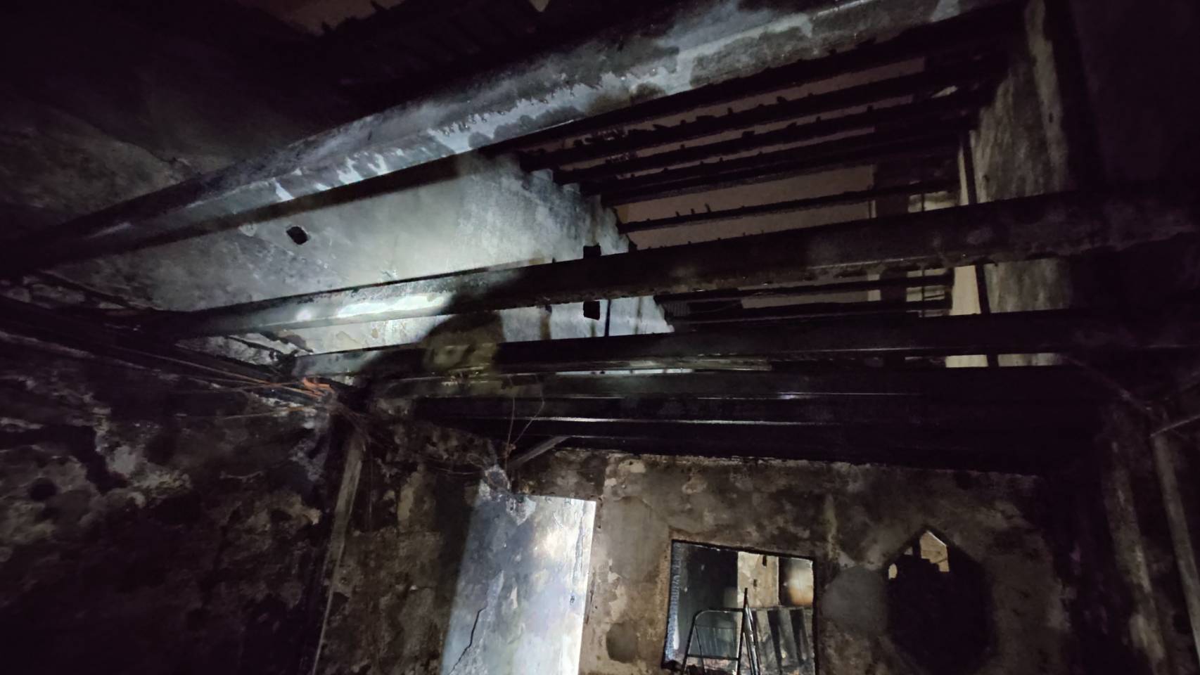 民宅嚴重燒毀。翻攝畫面