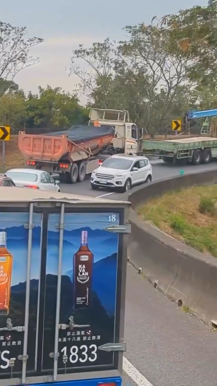 影/國道奇觀!休旅車逆向閃車陣下交流道 同時間小貨車跨槽化線換道
