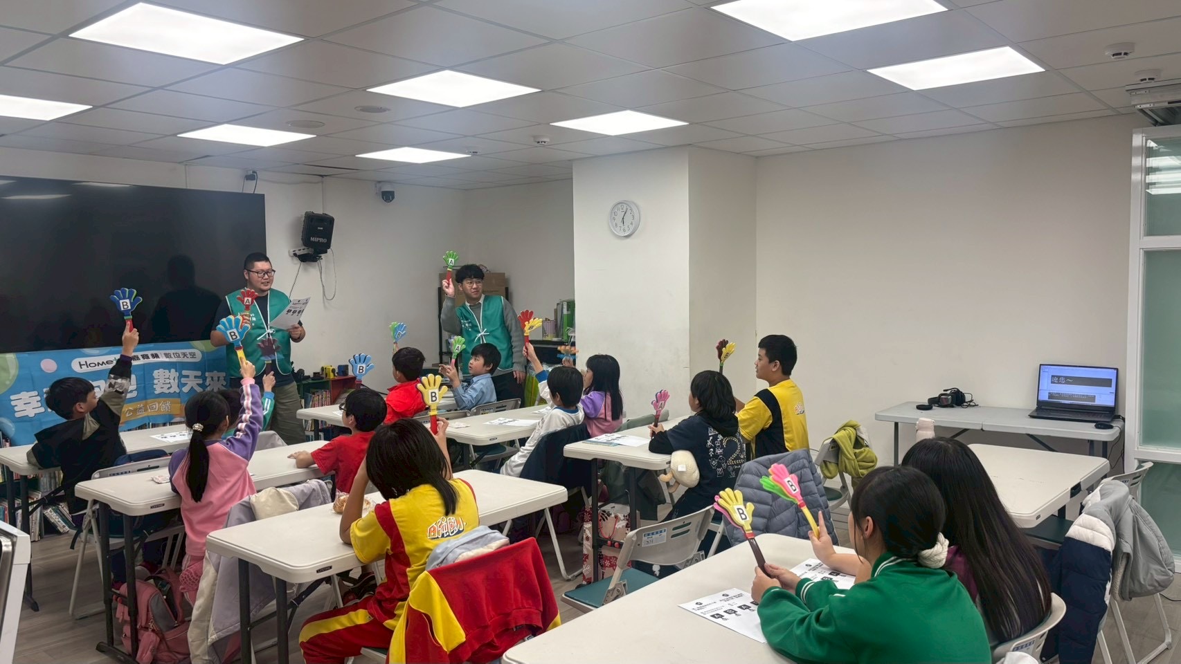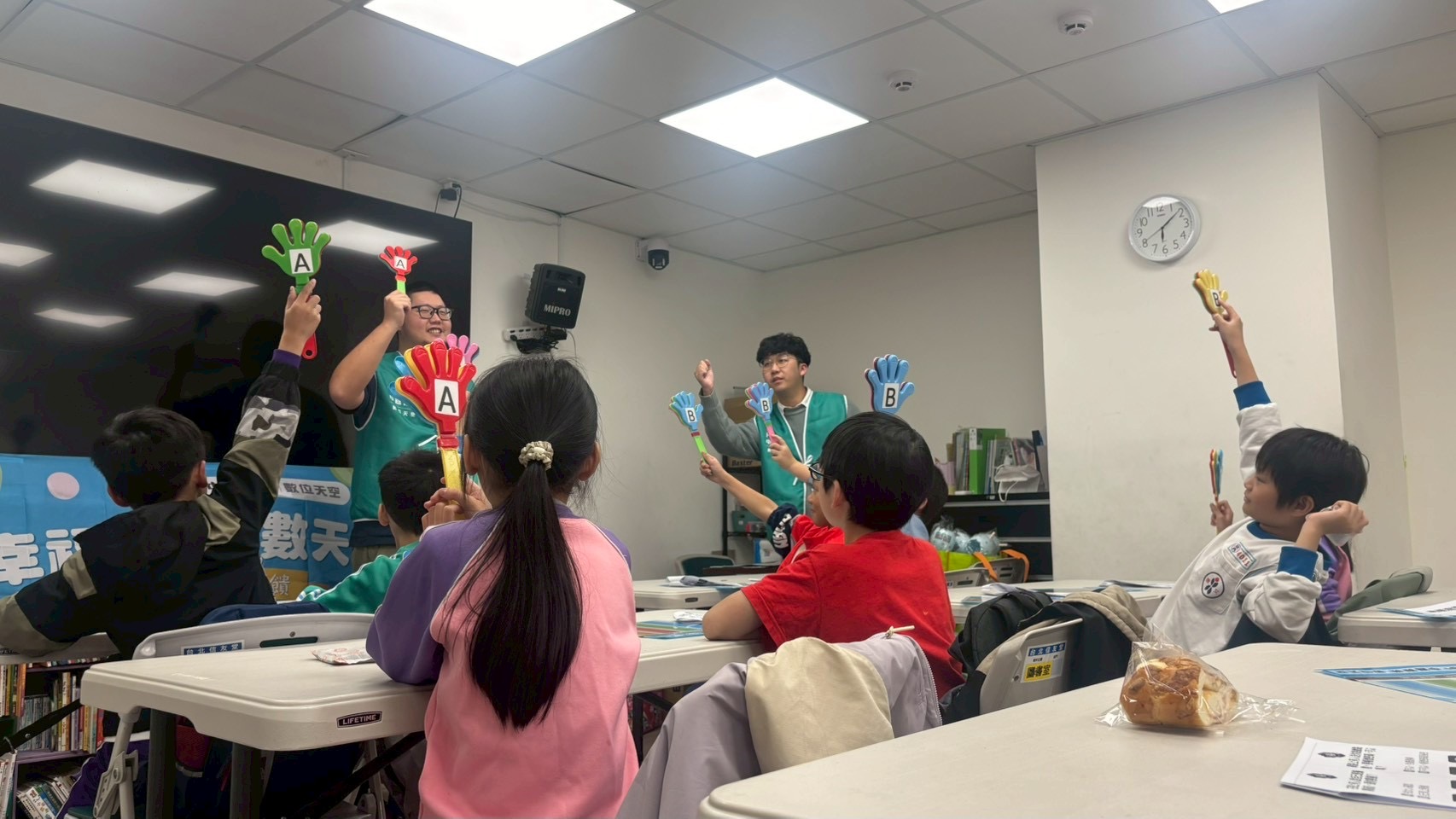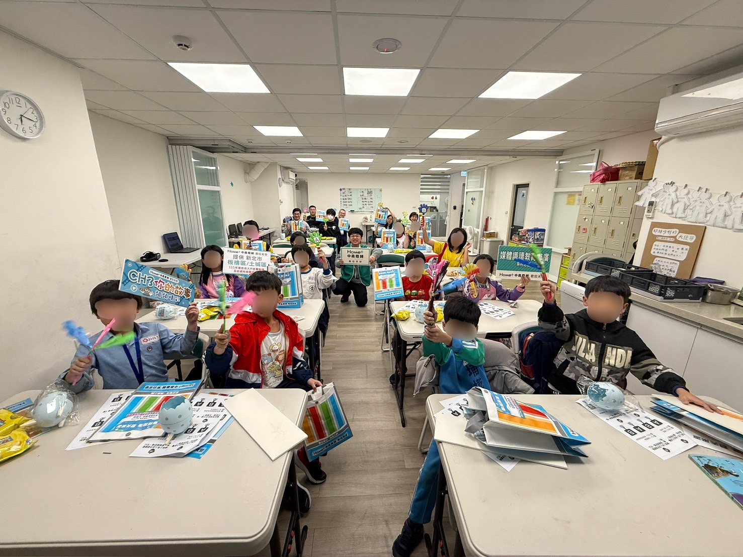 教學過程中,中嘉寬頻|數位天空講師以分段引導方式帶領孩子進行思考與回應,透過討論與回饋,加深其對媒體內容的理解,讓媒體識讀不只是概念,而是能實際運用於生活中的能力。同時在在每個答題過程中給予餅乾、環保袋及環保置物盒等吸引孩子注意力的小禮物,幫助陪讀班學童在課程中展現高度專注與參與度,顯示體驗式學習有助於提升學習理解與吸收效果。