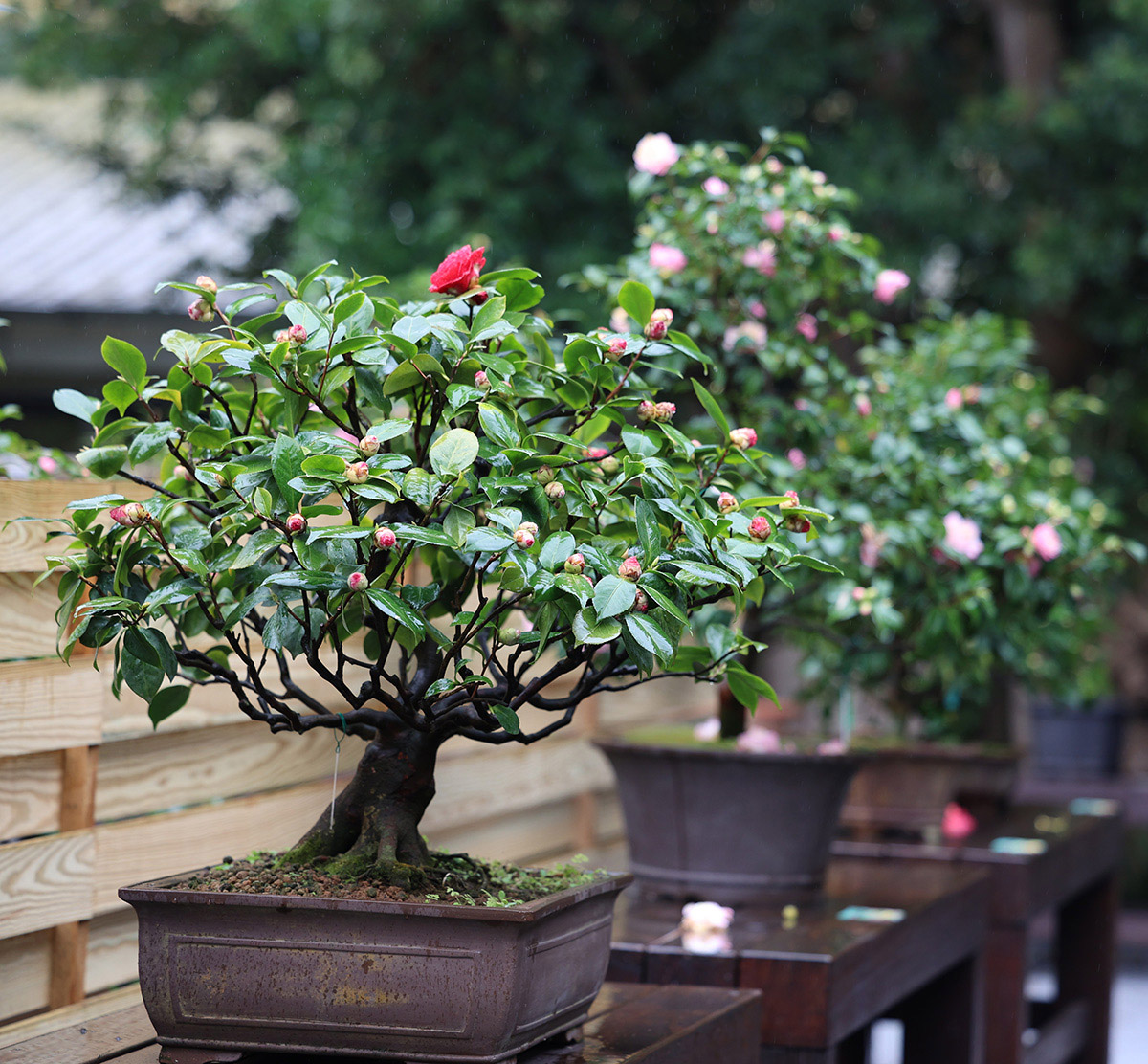 今年新規劃「迷霧茶花園」透過霧氣與植栽配置,營造如夢似幻的賞花氛圍,遊客可漫步其中,細細欣賞茶花的每一個細節。茶花花瓣細膩柔美,從純白如雪到斑斕絢麗,每一朵都獨具姿態;單瓣簡約清新,重瓣層層疊疊,如絲絨般豐盈。光影間,茶花千變萬化的韻致悄然展現,令人流連忘返。
