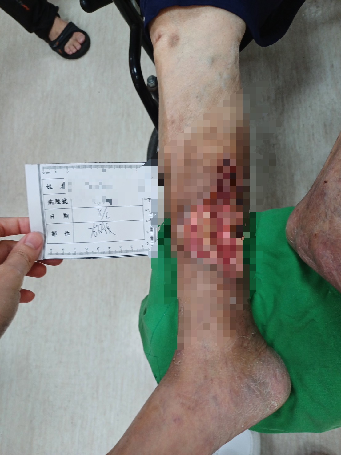 圖說:75歲老翁開刀前腳部已嚴重潰瘍見骨