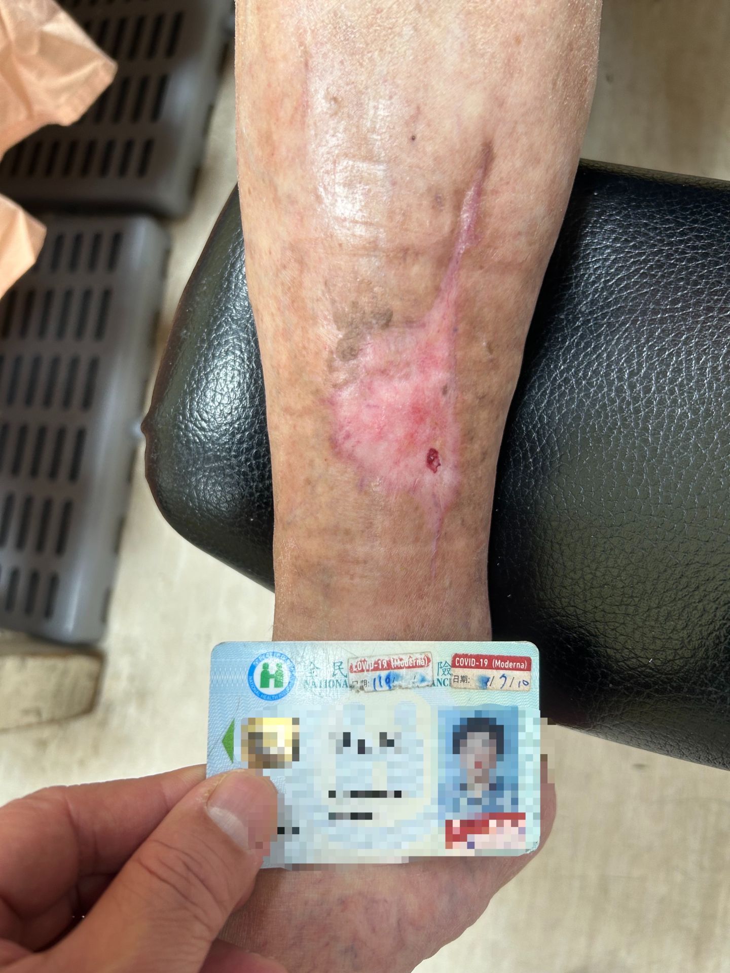 治療上,醫療團隊先安排病患住院進行傷口清創,穩定傷口狀況、避免感染擴散,隨後施行下肢動脈氣球擴張術,成功改善血管狹窄,恢復下肢血液循環,傷口狀況也逐步好轉。後續2個月,傷口明顯改善,肉芽組織逐漸生成,但仍留有約巴掌大的傷口未長皮,便會診整形外科補皮,但之後因久坐及血糖控制不良,傷口又出現滲液、濕爛情形,導致移植皮膚逐漸壞死。再以雷射閉合術後,傷口滲液情形明顯改善,肉芽組織持續生長,約兩個月內,傷口與皮膚即完全癒合。