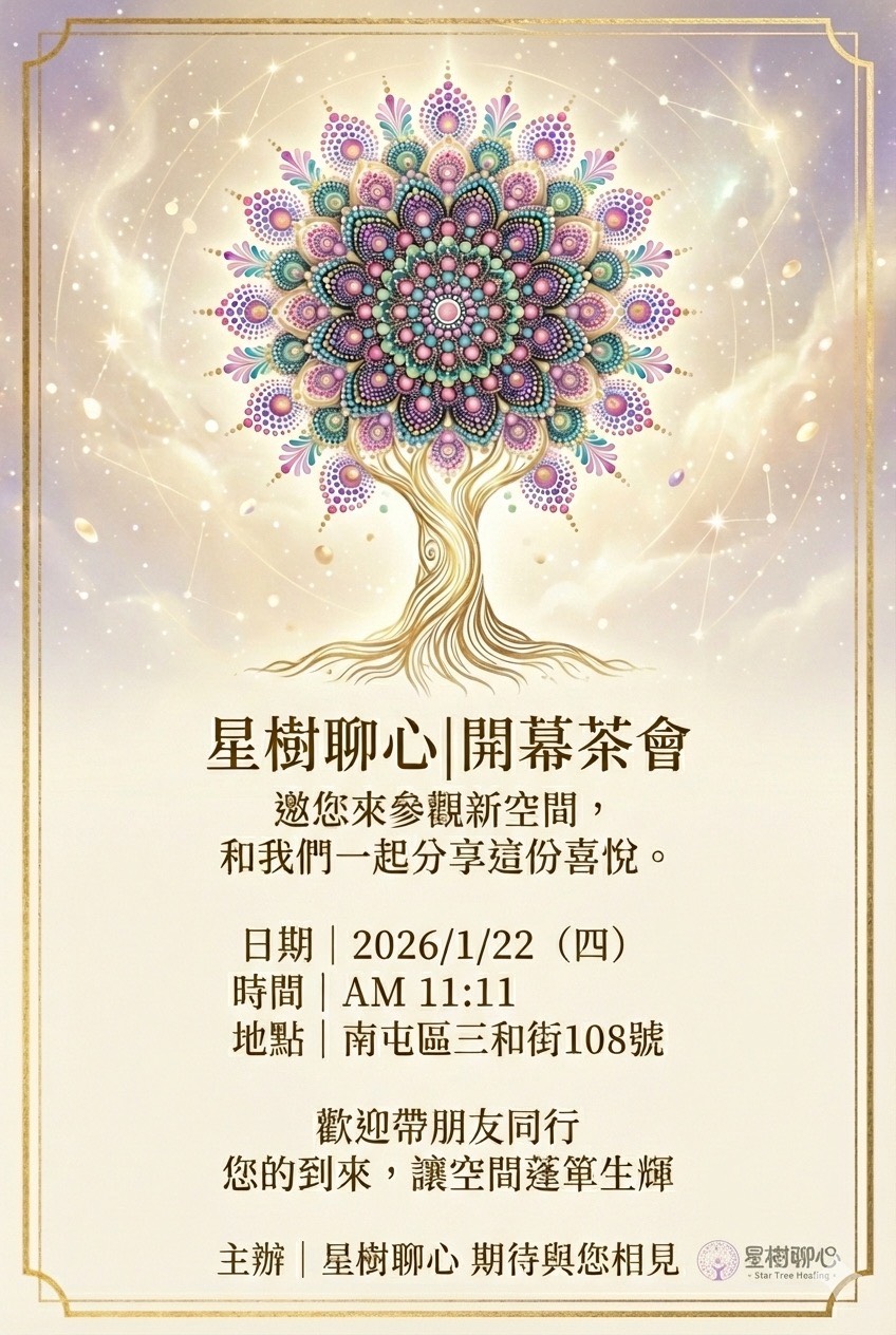 在步調快速、情緒壓力日益堆疊的現代生活中,一個讓人能慢下來、好好安放自己的空間顯得格外珍貴。位於台中市南屯區的療癒創作空間「星樹聊心」,將於2026年1月22日舉辦開幕茶會,邀請民眾走進一處溫柔而穩定的場域,重新整理情緒、找回內在節奏。