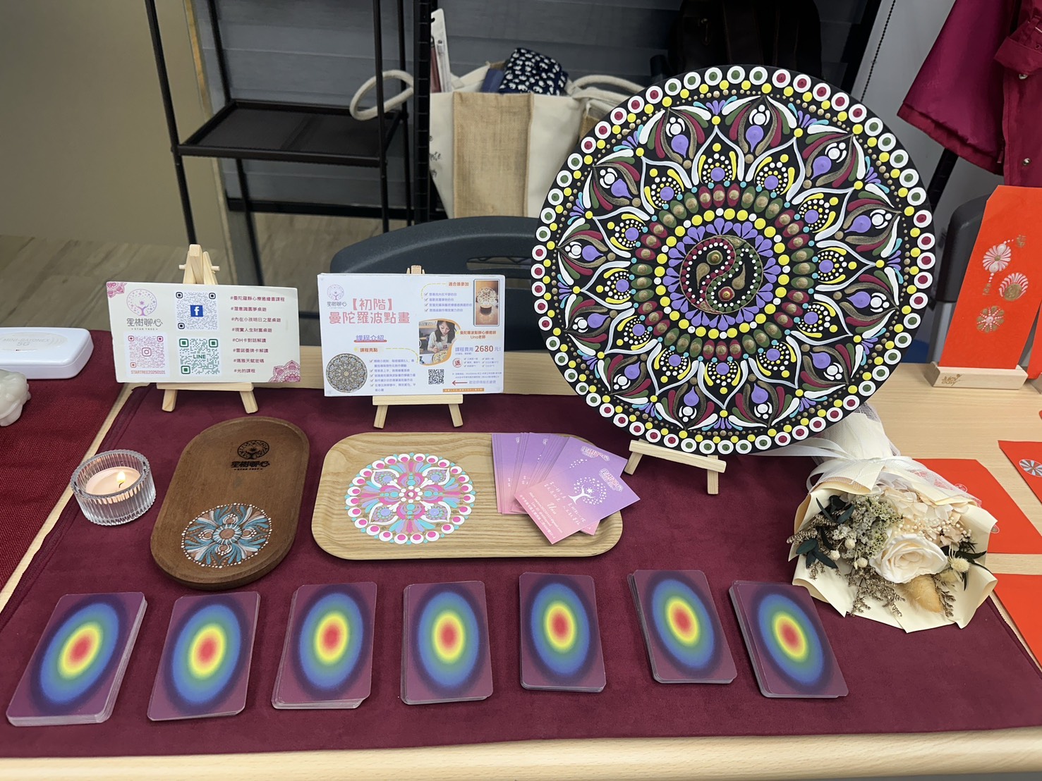 ▲「星樹聊心」療癒創作空間現場陳設曼陀羅藝術作品、靜心牌卡與手作小物/星樹聊心提供