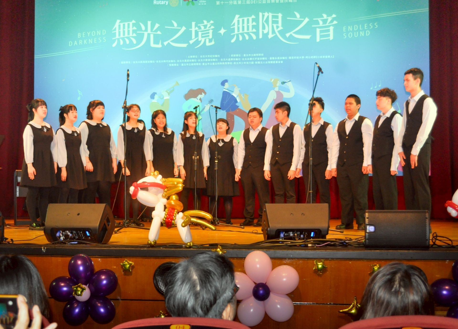 第三屆DEI公益音樂會暨扶輪日,前晚由國際扶輪3481地區第十一分區、台北大世紀扶輪社主辦、醒吾科技大學等單位協辦,以多元、平等、包容為主題。社長陳楓岳感謝團隊一年籌備,提醒觀眾放慢步調、用心聽見律動並給掌聲;地區總監黃鈴翔強調,每個人都是「不完美中的完美」,只要打開心胸,全世界都是音樂廳。