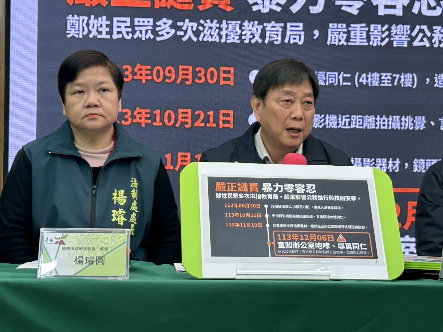 ▲臺南市政府與YMCA幼兒園遭鄭方形一年半的騷擾及侵害,已經不堪其擾,全力告到底。(記者黃雋淮 攝)