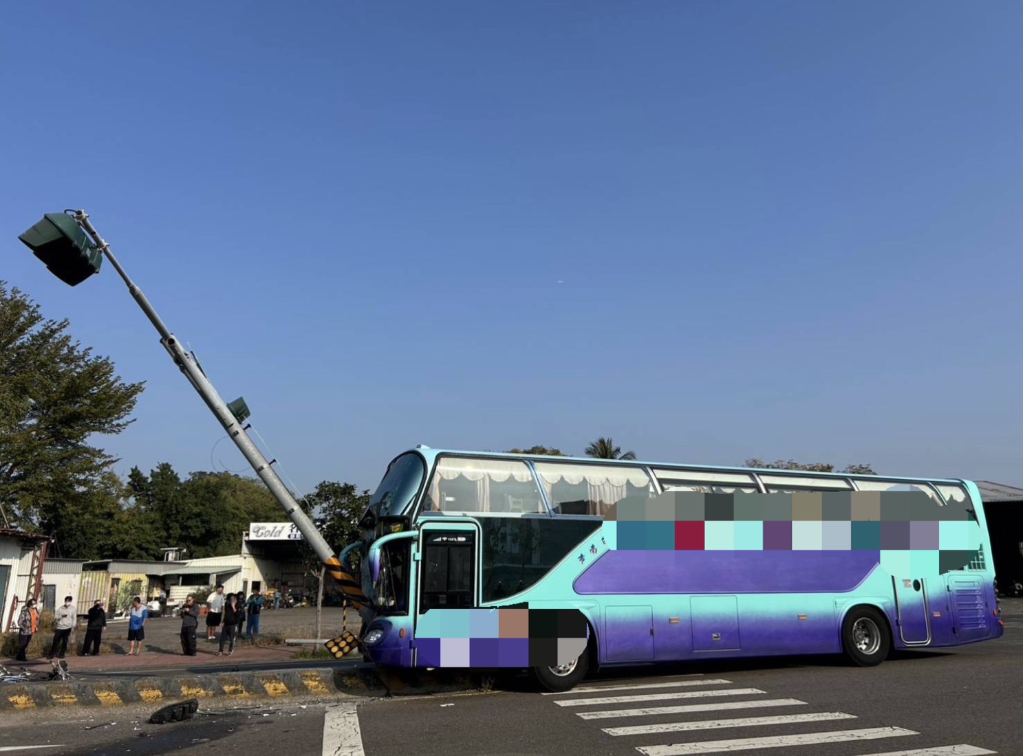 台南交通車撞機車後「再衝分隔島」!車頭全毀撞斷號誌桿 10多員工嚇壞2人送醫