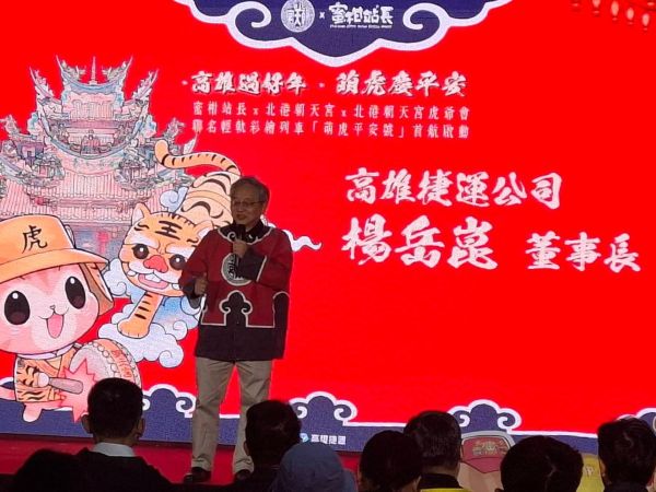 朝天宮蔡董事長致詞時表示:「感謝高雄市政府與高雄捷運對於這次聯名活動的高規格重視,讓媽祖信仰與北港朝天宮能在港都高雄展現不同的樣貌,不僅能親近人群,也接地氣更符合日常生活。」。陳其邁市長致詞時表示:「雲林北港的朝天宮,終年香火鼎盛,是全台分靈最多的媽祖廟,可謂臺灣「媽祖廟總本山」,北港虎爺(虎將軍)威名遠播,是小孩子跟毛孩的守護神,而蜜柑站長現在可算是高雄的超人氣代表性吉祥物之一,感謝高捷楊董事長與朝天宮蔡董事長這麼有創意的跨界結合,相信在寒假及新春期間,可以為高雄帶來滿滿的福氣與觀光人潮,也希望後續有機會邀請北港媽祖來高雄駐駕祈福。」高捷楊岳崑董事長表示:「仰賴政府TPASS政策提升大眾運輸,以及高市府的演唱會經濟及各相精彩行銷活動,高捷2025年運量為19.53萬人次達歷史新高,蜜柑站長感謝海內外柑仔蜜(蜜柑粉絲暱稱)的支持也深受大家喜愛,新的一年剛開始,很感謝北港朝天宮以及虎爺會非常高包容度的與高捷史無前例的創意合作,歡迎大家新春期間除了到北港朝天宮走春祈福感受媽祖恩澤四方外,也來到高雄搭乘萌虎平安號,探訪蜜柑站長的萌萌風采。」