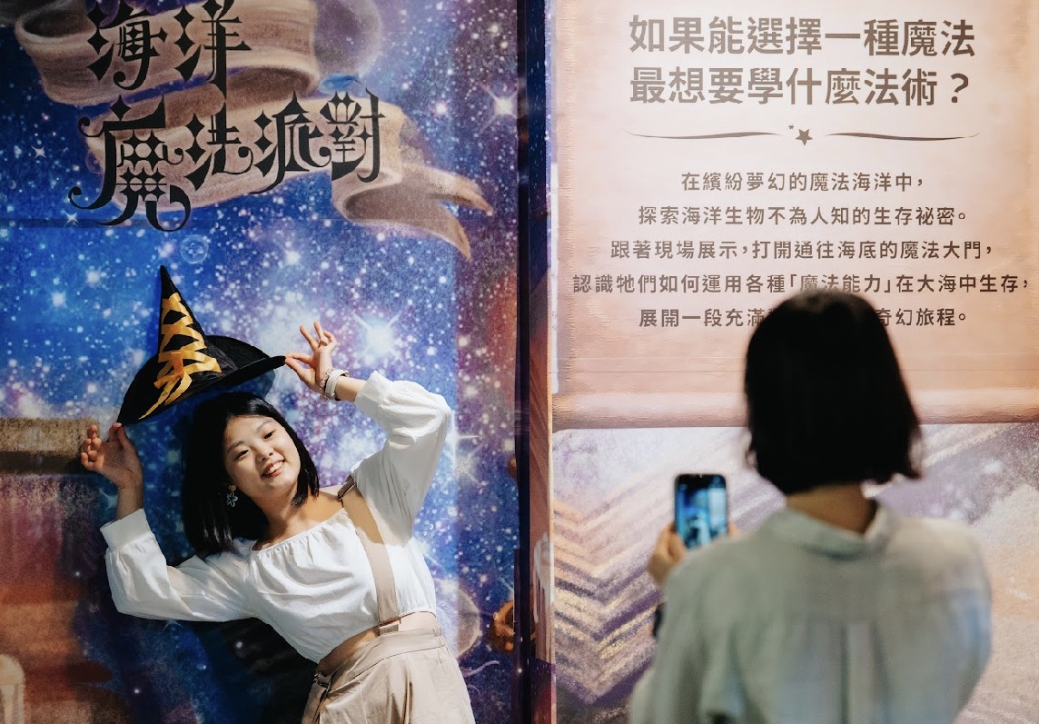除了主題展覽內容,屏東海生館也於活動期間推出多項互動體驗與限定好康,讓遊程更加豐富多元。其中,「趣味變裝」活動邀請民眾化身魔法師入館,拍照打卡並至海生館官方Facebook指定抽獎貼文留言,就有機會抽中夜宿海生館免費名額;凡變裝並至館內指定賣店單筆消費滿699元,還可享總價九折優惠,讓魔法體驗延伸到購物樂趣。「心理測驗」則以「你想學習哪一種魔法?」為題,透過趣味問答,找出與自己最相似的魔法系海洋生物,並可分享至社群平台,在互動中認識各種生物的生存能力。