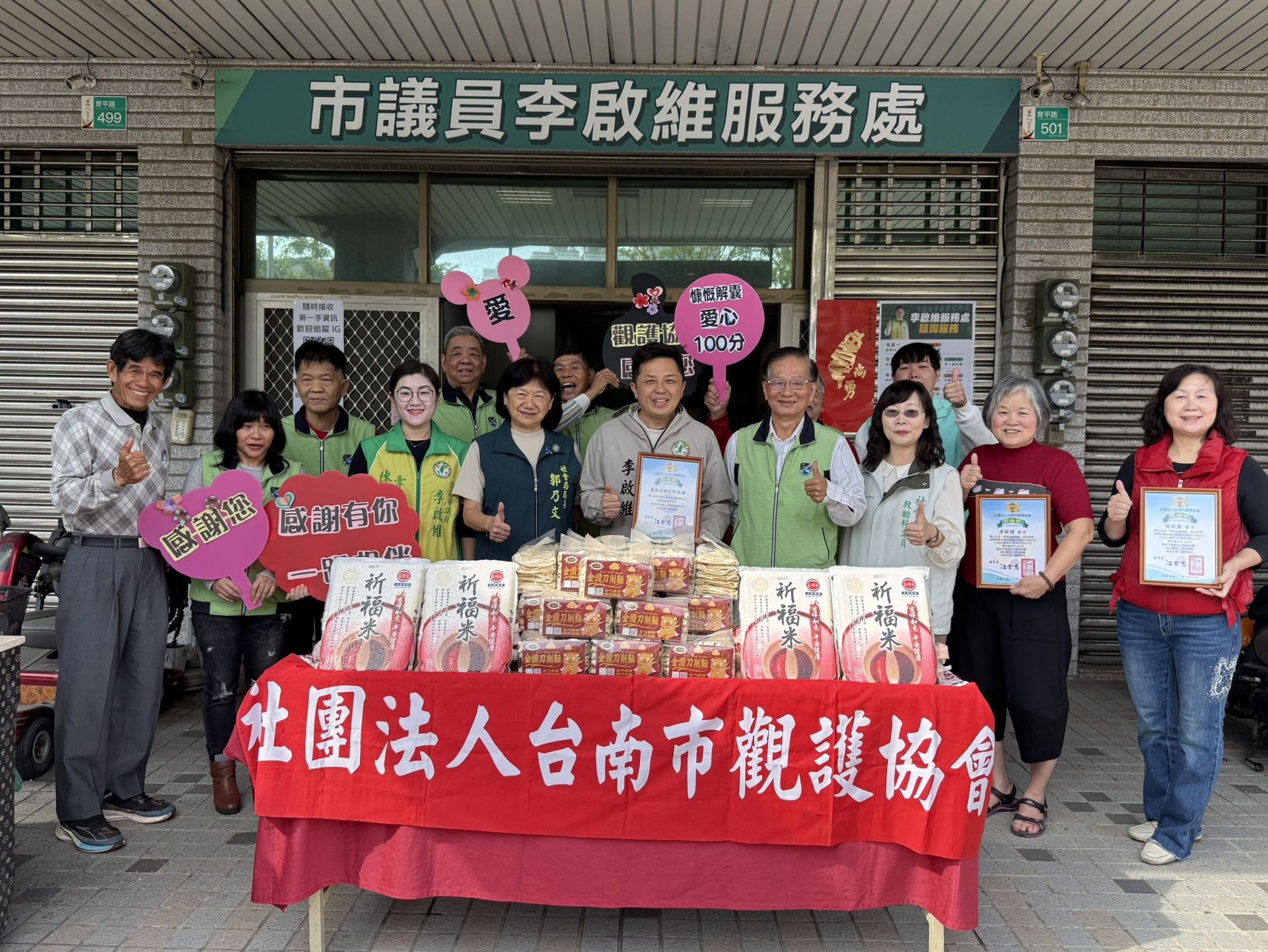 【記者 蘇璇/臺南報導】春節將至,為關懷弱勢非行少年及其家庭,台南市議員李啟維服務處結合各界善心人士與熱心企業,共同捐助超過千公斤米麵及現金新台幣9萬餘元,贈與社團法人台南市觀護協會,協助辦理「寒冬送暖」春節慰問活動。捐贈儀式於27日上午在安平區李啟維議員服務處舉行,現場氣氛溫馨感人。