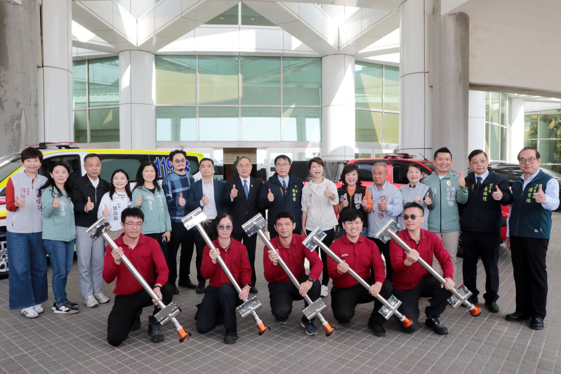 市長黃偉哲表示,台南市消防人員不僅訓練扎實,近期更在內政部高級救護員評比中榮獲全國第一,市府在硬體設備上也必須持續加碼,讓第一線消防與救護人員在執行救命、救災任務時,擁有最完善、最可靠的裝備。他也強調,市府近年除持續汰換救護車、消防車外,並積極部署救護機器人與無人機等科技設備,儘管財政資源有限,仍堅持投入資源,除為守護市民生命安全,同時也希望確保消防與救護人員在最安全的條件下執行勤務,珍惜每一條市民生命。