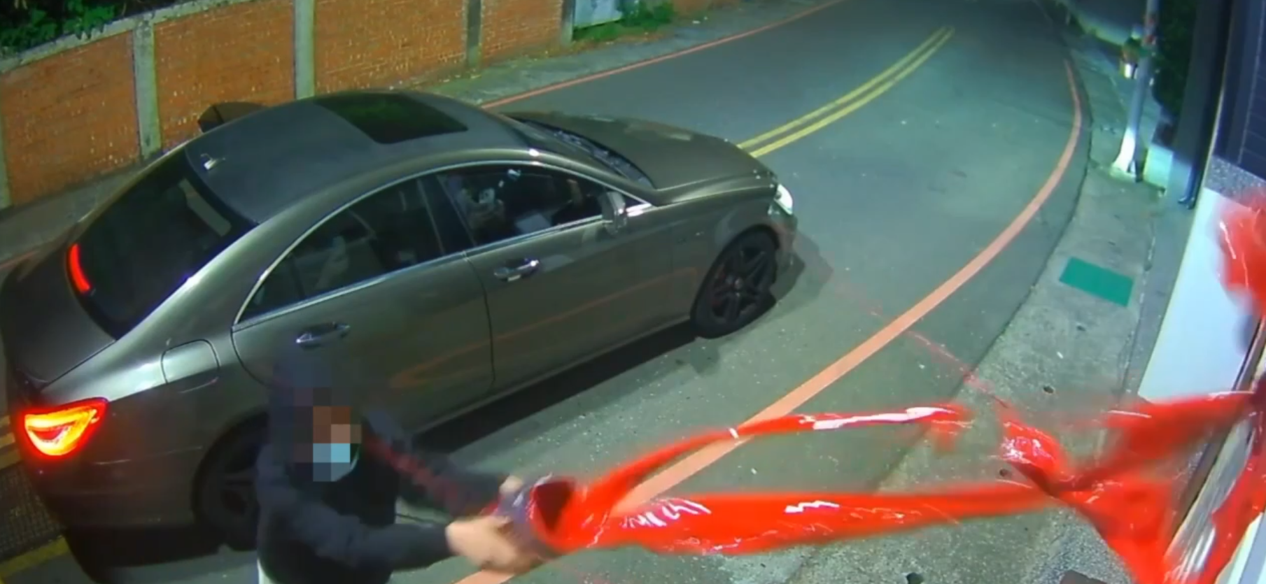 嫌犯朝被害人車子丟雞蛋。翻攝畫面