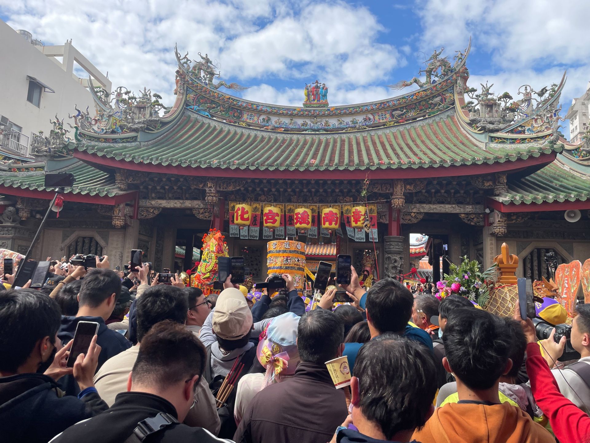 圖說:南瑤宮開基三媽入火安座 大批信眾擁入南瑤宮護媽祖鑾轎回南瑤宮