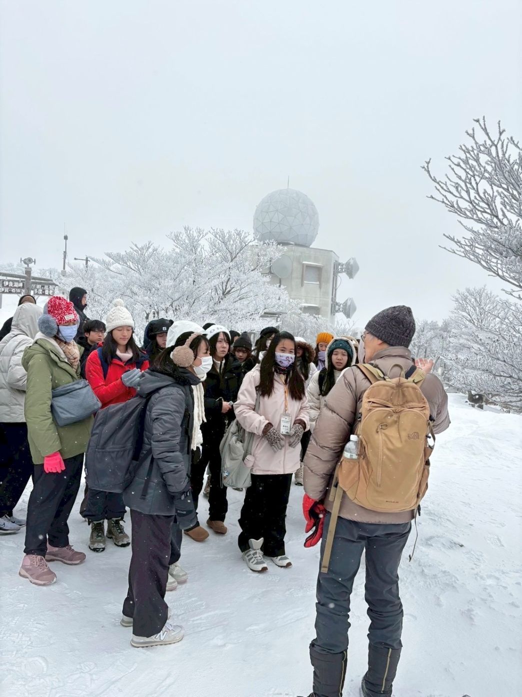 樹冰探究: 邀請日本國立三重大學立花義裕教授指導,前往御在所岳實地考察「樹冰」成因,引導學生從氣候變遷視角反思生態保護。