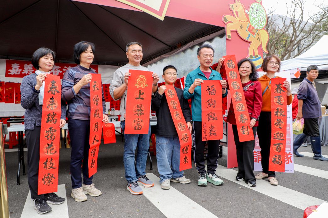 縣長揮毫送福:馬年紅包驚喜連連活動首日,嘉義縣長翁章梁親臨現場,與書法大師楊貴真現場揮毫,筆走龍蛇寫下春聯為縣民祈福。縣長更親自發放「馬年小紅包」,吸引民眾排隊領取,現場喜氣洋洋。翁章梁縣長表示: 「嘉有好市集是嘉義最具代表性的年節盛會。今年我們準備了最在地、最優質的特產,不管是送禮還是自家圍爐,來這裡挑選絕對最有誠意!」