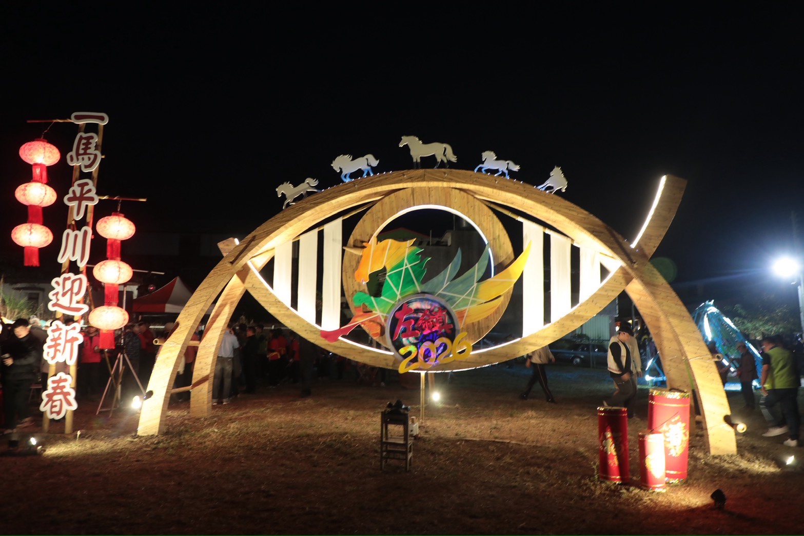 燈會共規劃五大展區,串聯左鎮老街、蔗埕及化石園區等重要生活場域,展出《竹影月脈》、《竹築方陣》、《竹浪雲煙》及主燈《一馬平川・迎新春》等大型裝置作品,並融入穿山甲、雲海等淺山生態意象及西拉雅文化元素,展現左鎮多元而厚實的文化層次。